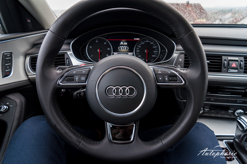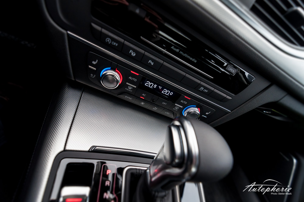 Ihr habt es euch also gemütlich gemacht in dem fahrenden Wohnzimmer, super, dann wird’s nun zur Abwechslung richtig ungemütlich, zumindest für die Beifahrerfraktion. Der Drehschalter passt den Charakter des Multitalents an, ein Dreh nach rechts und schon ist der „dynamic“-Modus ausgewählt – die adaptiven Dämpfer werden straffer, das Fahrwerk bringt die Karosserie näher an den Erdboden. Die Kontrolle überlassen wir der 8-Gang-tiptronic, die ohnehin schneller schaltet, als es über die Paddles hinter dem Lenkrad möglich wäre. Fast aus dem Stand stehen dank dem Selbstzünder schon brachiale 650 Nm Drehmoment an, die nur darauf warten vom Mittendifferenzial auf Vorder- und Hinterachse aufgeteilt zu werden. Jetzt wird garantiert nicht im Matsch gespielt, nein, der quattro soll zeigen wie man in den engen, gewundenen Kurven der Landstraßen und rasant über schlecht ausgebaute Waldwege, die seit dem letzten Winter als unbefahrbar gelten noch ein Maximum an Traktion und damit Spurtreue herausholt – natürlich auch in Grenzsituationen. Die Mechanik nimmt alles kommentarlos hin und auch die Elektronik regelt blitzschnell. Über den fulminanten Klang der doppelflutigen Auspuffanlage werden die kaum spürbaren Schaltimpulse akustisch bestätigt.