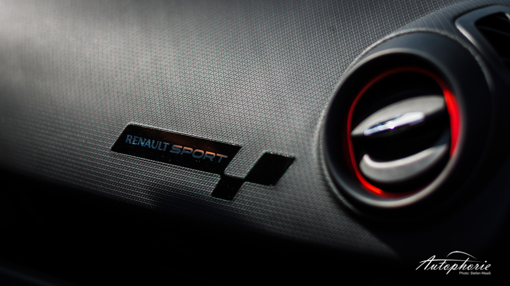 Er ist der kleine Krawallbruder des Renault Megane R.S., der junge Spund, der unerschöpflich scheint. Mit kühnem Understatement hat er mein Unterbewusstsein bereits nach der ersten S-Kurve gepackt. Den Übergang von Teer zu Kopfsteinpflaster inmitten des Apex bügelt das raffinierte Sportfahrwerk einfach weg. Es folgt eine längere Links, die Elektronik hält sich wie gewollt zurück und greift nur in äußersten Ausnahmefällen ein. Ich merke wie der Kleine Traktion verliert – es piept und tönt hier und dort um Schlupf zu signalisieren. Die Drehzahl eigentlich schon hinterm Begrenzer, die elektronische Differenzialsperre nur noch am regeln. Der Sportmodus, den ich noch während des Stands aktiviert habe, hat sich seinen Namen redlich verdient.