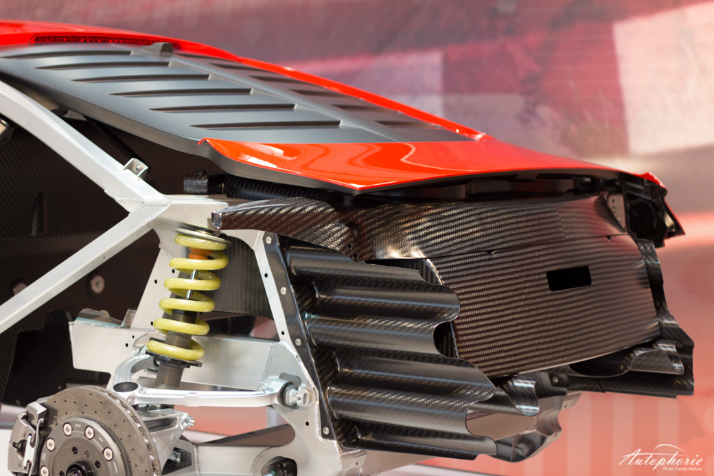 Rein rechnerisch sind 215 Kilometer Reichweite drin, die routinierten Testfahrer schaffen es laut Audi-Aussagen auf 180 km. Schlussendlich steht am Ende des Tages aber fest, es ist ein Auto, das nur einen Zweck hatte: Technik spendieren. Audi wollte zeigen, was möglich ist, was die Ingolstädter im Stande sind zu verrichten. Viel von diesem Know-how soll in den Audi A3 e-tron geflossen sein, der im nächsten Jahr in den Verkauf geht. Viel Carbon, einige Teile aus Titan, Federn aus glasfaserverstärktem Kunststoff und 530 Batteriezellen aus den seltenen Erden, die ganz am Rande auch die Frage aufwerfen, wie Grün ist das nun alles wirklich? Neue Entwicklungen, wie der Aufprallschutz am Heck, das in Wellenform gestaltete Carbonteil, welches Aufpralle absorbieren und dabei gleichzeitig die Batterie schützen soll, zeigen wie sicherer Leichtbau (aus dem Motorsport inspiriert) in Serie aussehen kann. Gewichtseinsparungen, neue Doppelquerlenker der zweiten Generation aus Aluminium, das CFK Rohr zusammen mit den Alu-Schenkeln machen den elektrischen R8 zumindest auf einer von Kurven übersäten Strecke zum performanteren R8, erst auf der Geraden kann sich der Verbrenner im Schatten des AMOLED-Rückspiegels anschleichen und vorbeiziehen.