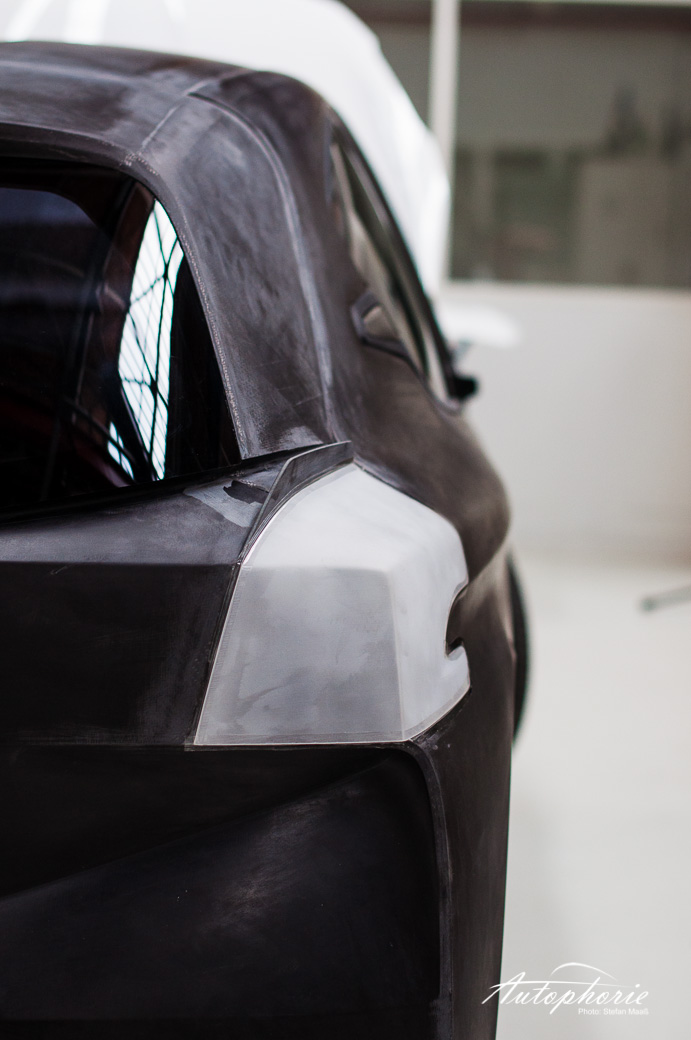 Vorne bemerkt man kaum Eingriffe, lediglich die Außenspiegel wurden komplett gestrichen: hier werden künftig Kameras ein Bild jeweils links und rechts in den breiten Rückspiegel übertragen. Dafür werden abermals Luftwiderstand und Verwirbelungsquelle vermieden. Des Weiteren scheinen die Schulterlinien nun wesentlich stärker ausgeprägt und auch die kleinen „Flossen“ über den Rückleuchten mit mehreren Führungsrillen auf der Leuchte fallen direkt in’s Auge. Summa summarum ergibt das einen sehr guten cW von 0,25 (die endgültige Messung erfolgt diese Woche) Rocket science?