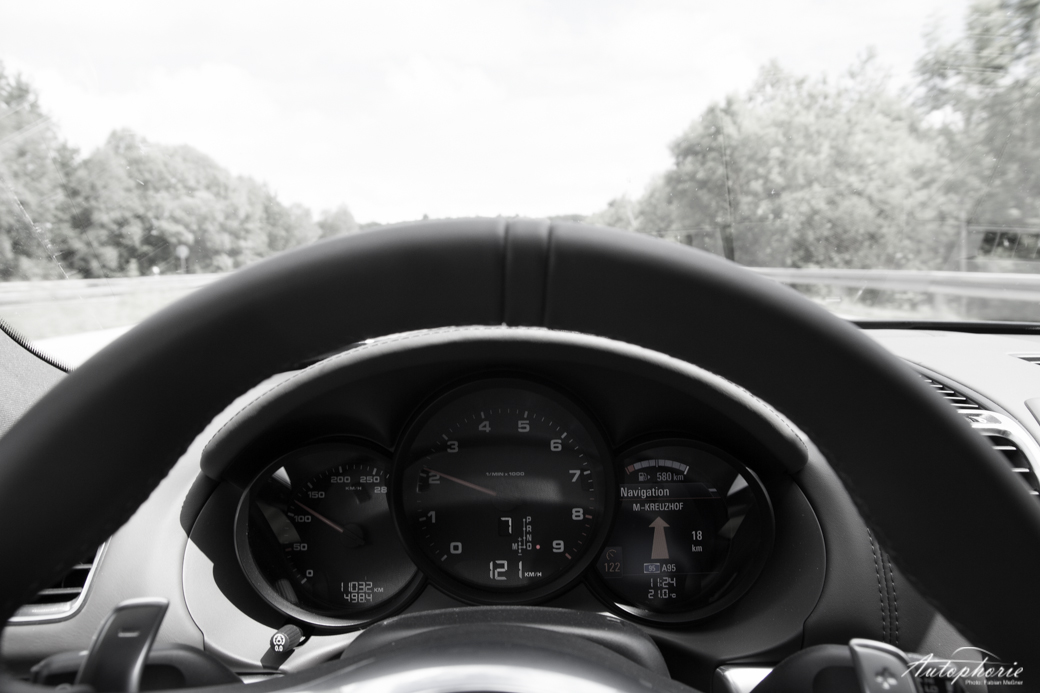 Das sagenhafte Gefühl der Lenkung, das der Cayman an den Tag legt, ist, derzeit im Premium-Segment fast schon einzigartig. Hier gibt es nicht nur Feedback, was die Vorderachse angeht, sondern auch das Gefühl jederzeit zu wissen, nein zu spüren, was die Lenkimpulse bewirken, nahezu wie die Straßenbeschaffenheit ist. Ganz davon abgesehen, dass der Fahrer am Lenkrad nicht von unnötigen Knöpfen ablenkt wird, ist der Fahrer hier noch Fahrer und kann Eins mit der Straße werden. Ganz getreu dem Motto von Walter Röhrl „Im Prinzip bist du bei dem Auto mit dem Denken schon zu langsam.“ (Walter Röhrl – über den Audi Sport Quattro S1), rückt das Fühlen, das Spüren, die emotionale Verbindung zwischen Mensch und Maschine wieder in den Vordergrund.