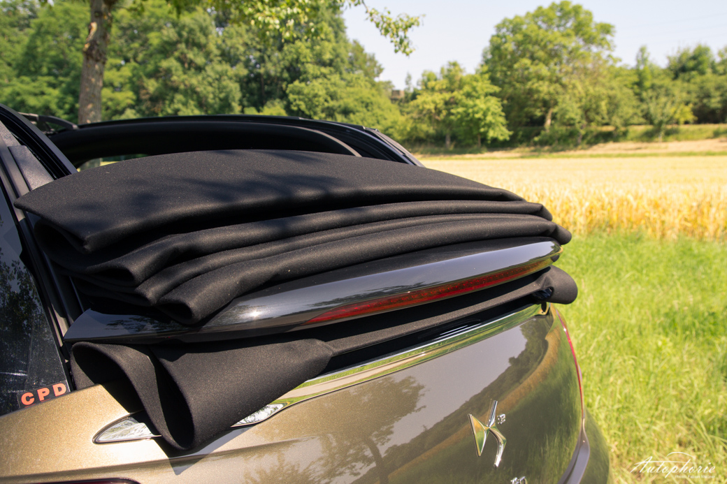 Offen macht es doch am meisten Spaß. Da fährt auch direkt der Windabweiser aus, der die Verwirbelungen im Innenraum deutlich reduziert – zumindest in der ersten Klasse. Auf der Rückbank wird es dagegen noch luftiger. Hier sollen zudem drei Personen Platz finden. Dass diese dafür aber extrem dünn gebaut sein müssen steht nirgends geschrieben. Realistisch sind zwei Personen. Nicht einmal drei Kinder würden sich im Fond wohlfühlen. Unabhängig davon, ob das Verdeck geschlossen oder geöffnet ist, bietet das DS3 Cabrio ein Kofferraumvolumen von 245 Litern, welches für sich ausreichend ist, um zwei Board-Trolleys und weitere kleine Taschen unterzubringen. Das Problem ist eher die Öffnung. So raffiniert die Heckklappe auch nach oben schwingt (halbkreisförmig), so minimal ist auch die Öffnung. Gemessen ergibt sich eine Ladeluke von 66 Zentimeter Breite und 27 Zentimeter Höhe. Um sich ein Bild zu malen: Ein offizieller NBA Basketball (Größe 7) geht geradeso ohne Anlauf und Schmierseife durch die Öffnung.
