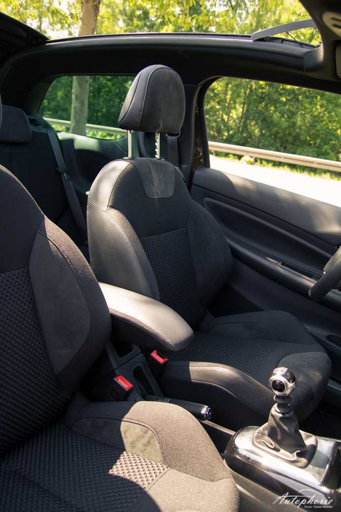 „Es will kein klassisches Cabriolet darstellen, sondern ein Fahrzeug, durch das sich der noch so kleinste Sonnenstrahl genießen lässt“ – Citroën. Manchmal frage ich mich echt, wer solche inhaltslosen Sätze absegnet. Sorry, aber was soll uns das sagen?! Ich versuche mich an einer Übersetzung: Das DS3 Cabrio ist zum einen kein gewöhnliches Cabriolet, da es kein voll versenkbares Verdeck hat, sondern sich nur ein Stoffverdeck nach hinten fahren lässt. Die A-Holme bleiben dabei immer präsent. Zum anderen liegt das Mehrgewicht durch Karosserieversteifungen hier am Kofferraum und durch das Stoffverdeck selbst bei nur 25 Kilogramm im Vergleich zum normalen DS3 mit Stahldach. Schließt man das Verdeck (es soll doch „Sonnenanbeter“ geben, die die Klimaanlage der Frischluft vorziehen), kommt durch getönte Seitenscheiben und schwarzes Verdeck nicht der kleinste Sonnenstrahl in den Innenraum. Wo also steckt nun der wertvolle Inhalt aus der Pressemeldung? „Aktenzeichen XY, ungelöst“ bleibt da nur noch zu sagen.