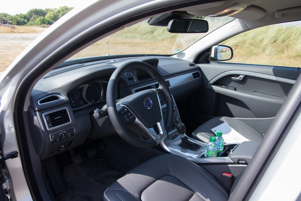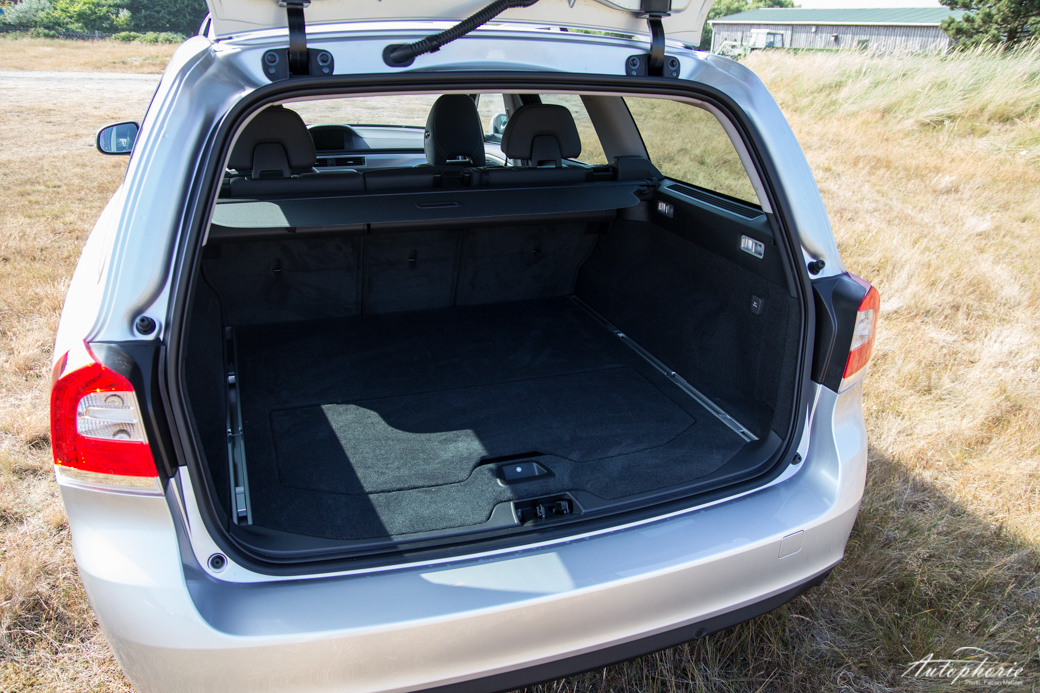 Die auf Knopfdruck öffnende Heckklappe schwingt weit, bzw. sehr weit, nach oben auf, damit sich niemand den Kopf stoßen muss und eben auch sperriges Gepäck ohne weiteres dank niedriger Ladekante problemlos eingeladen werden kann. Geschlossen werden muss dann aber wieder über den Knopf in der Heckklappe. Auf Knopfdruck an der Fernbedienung schließt sich die Klappe leider nicht mehr. Er ist und bleibt eben der Klassiker unter den Volvos, der Schwede für den Härtefall. Wenn der Lifestyle-Kombi der Premium-Konkurrenz, die von „form follows function“ noch nie etwas gehört hat, an seine Grenzen kommt, dann springt der Volvo ein und gibt den Lademeister. Neu im Sinne der Aufwertung sind Chromleisten, sowie kleinere Details in Chrom, die sich überall an der Karosserie wieder finden und die damit, obgleich sie nur dezent überarbeitet wurde, deutlich frischer wirkt als vor dem Facelift.