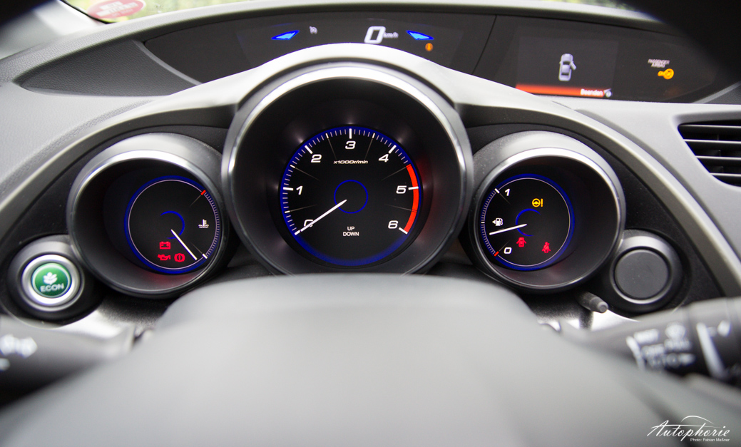 Auf längeren Fahrten lässt man sich angenehm von einer vertretbar guten Soundanlage beschallen, die insbesondere bei der Wiedergabe über Smartphones schon bei niedrigen Lautstärken glänzen kann. Etwas umfangreichere Einstellmöglichkeiten wären wünschenswert. Dafür gibt es eine ganze Menge von verschiedenen Wiedergabe-Möglichkeiten, darunter auch DAB. Leider ist es von kurzzeitigen Aussetzern betroffen – was bei DAB noch immer der überwiegende Fall ist. Gut, dass es eine USB-Schnittstelle gibt, über die sich auch die verbaute Festplatte füttern lässt. Neben den geläufigen Smartphones werden auch USB-Sticks (im Format „FAT“) erkannt und wiedergegeben. Allgemein ist die Bedienung sehr kniffelig. Selbst der Werkstattleiter bei Honda gab zu: „Wenn man nicht tagtäglich damit zu tun hat, ja, dann braucht es wohl doch einer kurzen Einweisung“, die darauf erfolgte. Doch auch nach zwei Wochen, habe ich den Weg durch das Infotainment-System nicht immer ohne Probleme gefunden. Zum Beispiel ist es mir weiterhin ein Rätsel, wie die Bluetooth-Verbindung funktioniert. Ansonsten ist die Bedienung zumindest weitestgehend selbsterklärend. Das Lenkrad wirft auch wenig Fragen auf. Es lenkt, bedient den Tempomat und auch das Radio. Kniffeliger wird es dann wieder um das Kombiinstrument. Schnell die üblichen Werte wie Restreichweite, Durchschnittsverbrauch oder den aktuellen Verbrauch checken, ist nicht drin. Alles kann nur einzeln angezeigt werden und muss mühsam „durchgedrückt“ werden. Da verbaut Honda schon so einen riesiges Bedienteil quer durch das Armaturenbrett und doch bietet es wenig Infos.