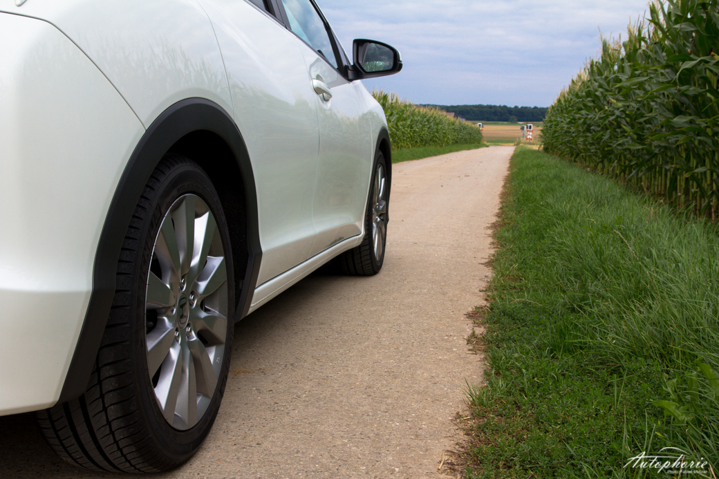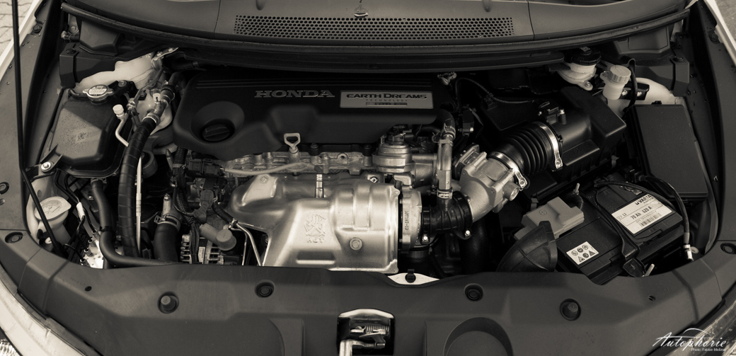 Unter der kurzen Motorhaube schlummert das Wunderwerk der Technik: 1,6-Liter Hubraum aufgeladen von einem Abgasturbolader, der für 120 PS sorgt und ab 2.000 Touren für kräftige 300 Newtonmeter Drehmoment an der Welle verantwortlich ist. Wie sich das anfühlt? Verdammt gut. Kombiniert mit der Sechsgang-Handschaltung, die, wie von Honda bekannt, durch sehr kurze Schaltwege durch die Gassen flutscht, lassen sich 1.440 Kilogramm flott und mühelos bewegen.