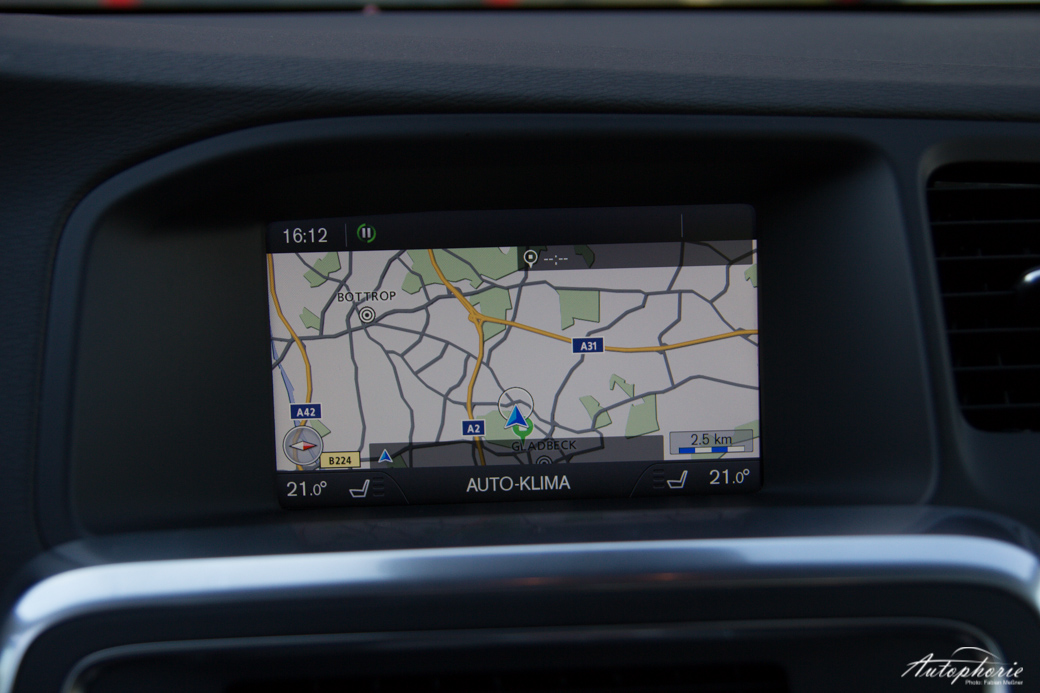 Das Warmfahren beschränkt sich auf den Weg aus der Stadt hinaus und die ersten begrenzten Autobahnkilometer. Graue Schilder ahoi! Der Kickdown beeindruckt den Motor nur geringfügig. Zurück in den vierten Gang ans Ende des Drehzahlbandes – doch der S60 beschleunigt. 130. 140. Und der fünfte Gang rückt nach. Der Schwede zieht, nicht sportlich, aber doch irgendwie, die Wurst vom Teller. Es reicht nicht ganz zum Tee aufgießen, eine Schnecke ist der wohl aber auch nicht. Angekommen bei fast 200 km/h gleitet die Limousine über den Asphalt. Ein wenig Spiel im Lenkgestänge macht sich bemerkbar, zeitgleich wird der Vordermann in der Abschussvorrichtung schon anvisiert. Der Distanzwarner erkennt den in der „Ferne“ fahrenden Bremser und die rote Warnleuchte markiert die Zielerfassung. Leider fehlt der rote Knopf um den Vordermann schlichtweg aus dem Weg zu räumen. Das tragische Ende: Es muss gebremst und danach wieder beschleunigt werden. Es fühlt sich an wie ein zähes Tau ziehen. Immer wieder schieben sich Fahrer in den Weg, die sich dauerhaft fragen, weshalb es auch noch seitlich diese Schminkspiegel gibt – zum eigentlichen Zweck benutzt werden sie jedenfalls nicht.