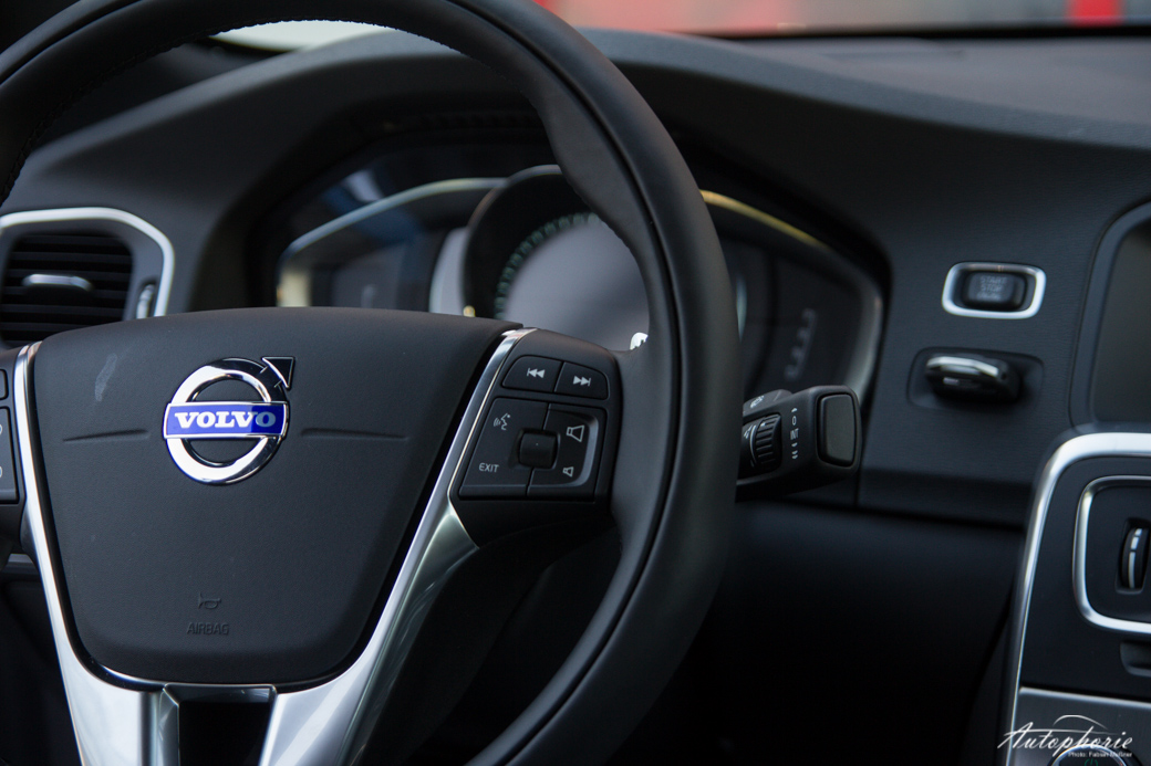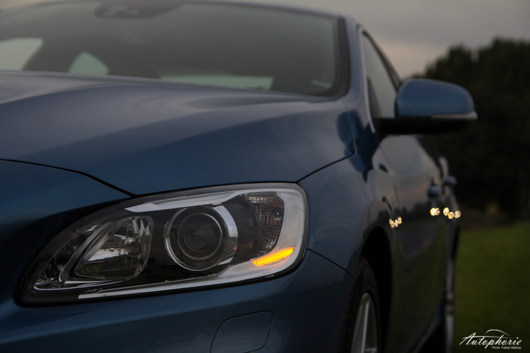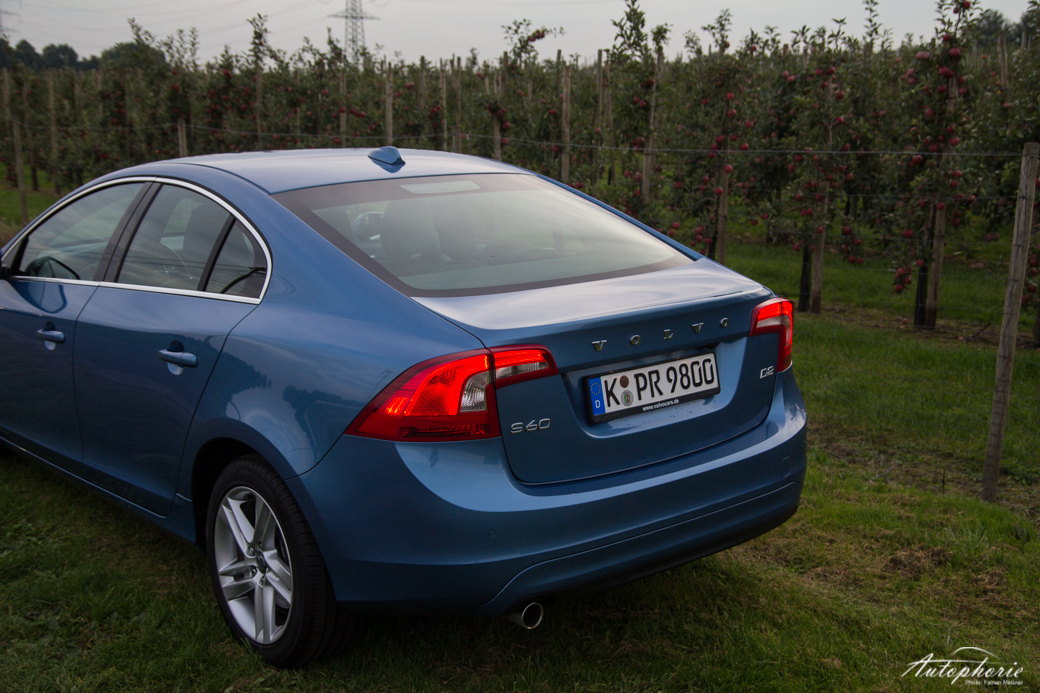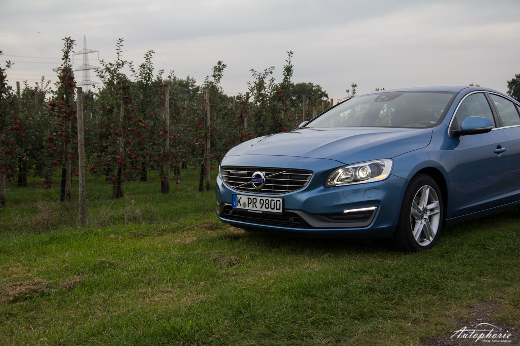 Es reist sich angenehm – auch zu viert. Zu fünft ist es eventuell nicht mehr ganz so gut. Der Kofferraum des S60 steckt ausreichend weg, egal ob große Trolleys oder prall gefüllte Einkaufstüten. Der Fahrer kann sich zur immer kälter werdenden Jahreszeit über Annehmlichkeiten wie die Lenkradheizung freuen. Nachts glänzt das scheinbar unmittelbar direkt an die Lenkradbewegung gekoppelte Kurvenlicht, welches ohne Verzögerung exakt die Lenkwinkel übermittelt und so die Kurve genauso ausleuchtet, wie sie gefahren wird. Die erst kürzlich überarbeitete Limousine bietet alles, was man von eben solcher erwartet: einen prägnanten Auftritt, Komfort, ein bisschen Luxus und höchste Sicherheitsstandards für Insassen sowie andere Verkehrsteilnehmer, insbesondere Fußgänger. Anders als beim V60 Facelift fällt die neu gestaltete Front beim S60 stärker ins Gewicht. Durch das breitere Gesicht wirkt die Limousine insgesamt noch flacher. Lediglich der Blick von der Seite lässt den Eindruck einer Keilform entstehen, da sich das Heck dezent anhebt. Der breite Grill sowie die ausgeprägte Motorhaube passen gut ins frische Auftreten des Schweden.