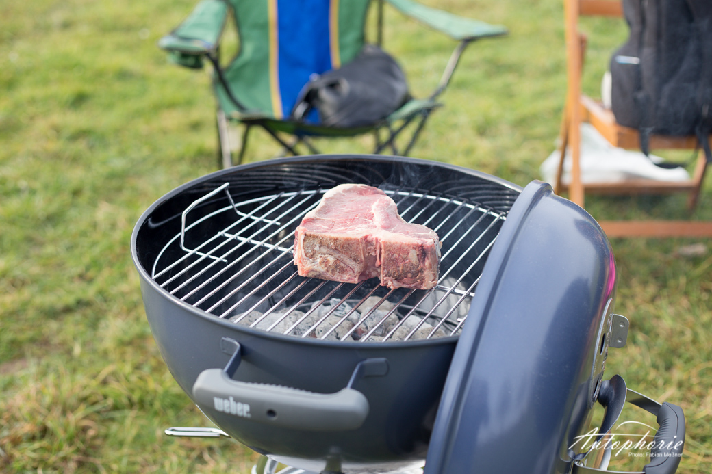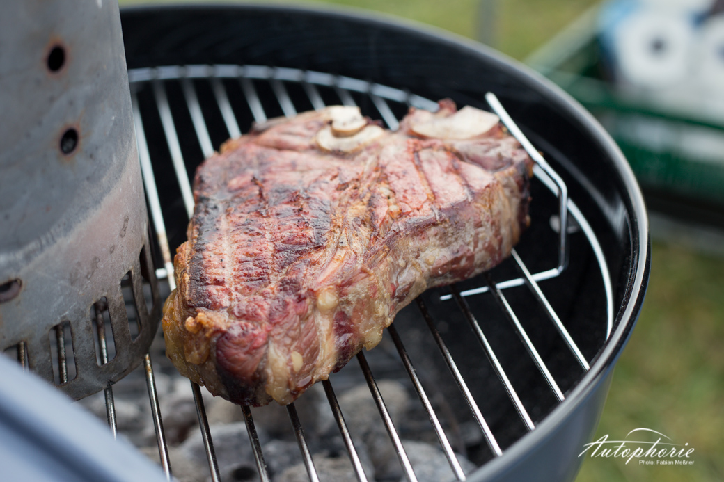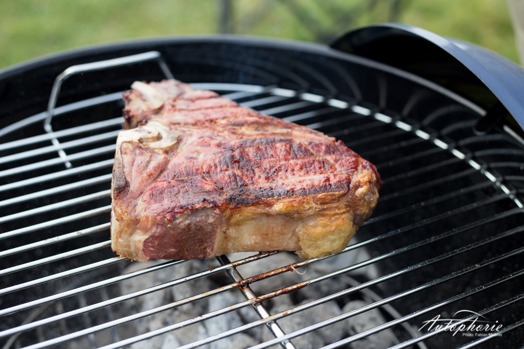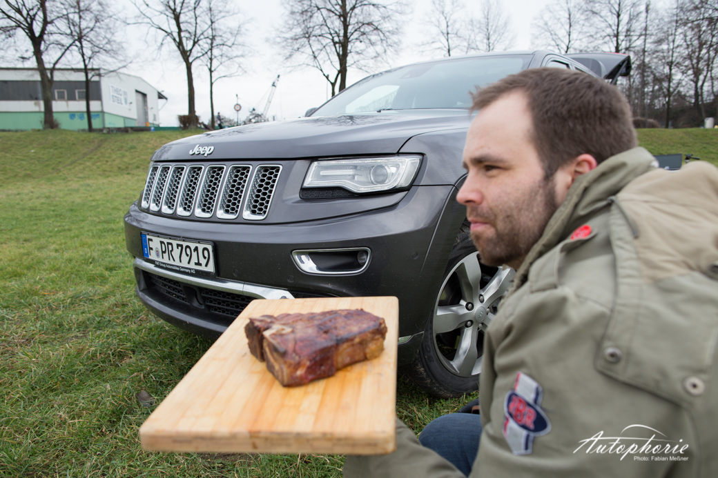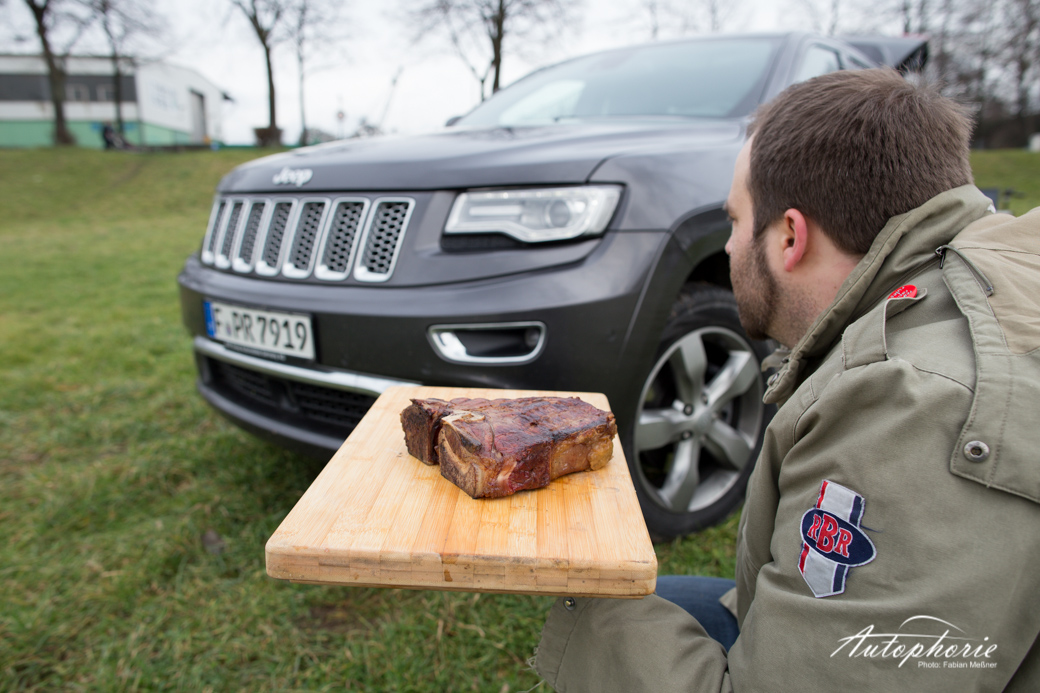 Produkte: Weber One Touch Kugelgrill in der Farbe Slate Blue (Neu 2014); T-Bone Steak, Stauferico Rücken und Hals von yourbeef.de; Jeep Grand Cherokee 3.0 CRD in der Ausstattung Summit.