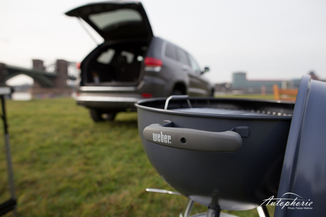 Produkte: Weber One Touch Kugelgrill in der Farbe Slate Blue (Neu 2014); T-Bone Steak, Stauferico Rücken und Hals von yourbeef.de; Jeep Grand Cherokee 3.0 CRD in der Ausstattung Summit.