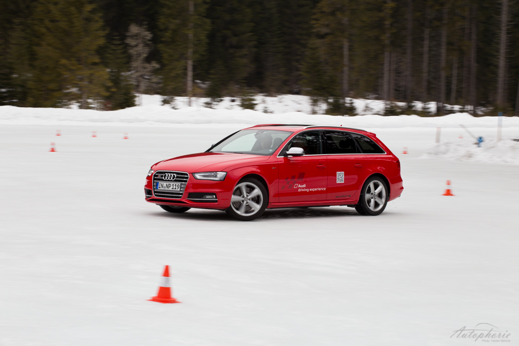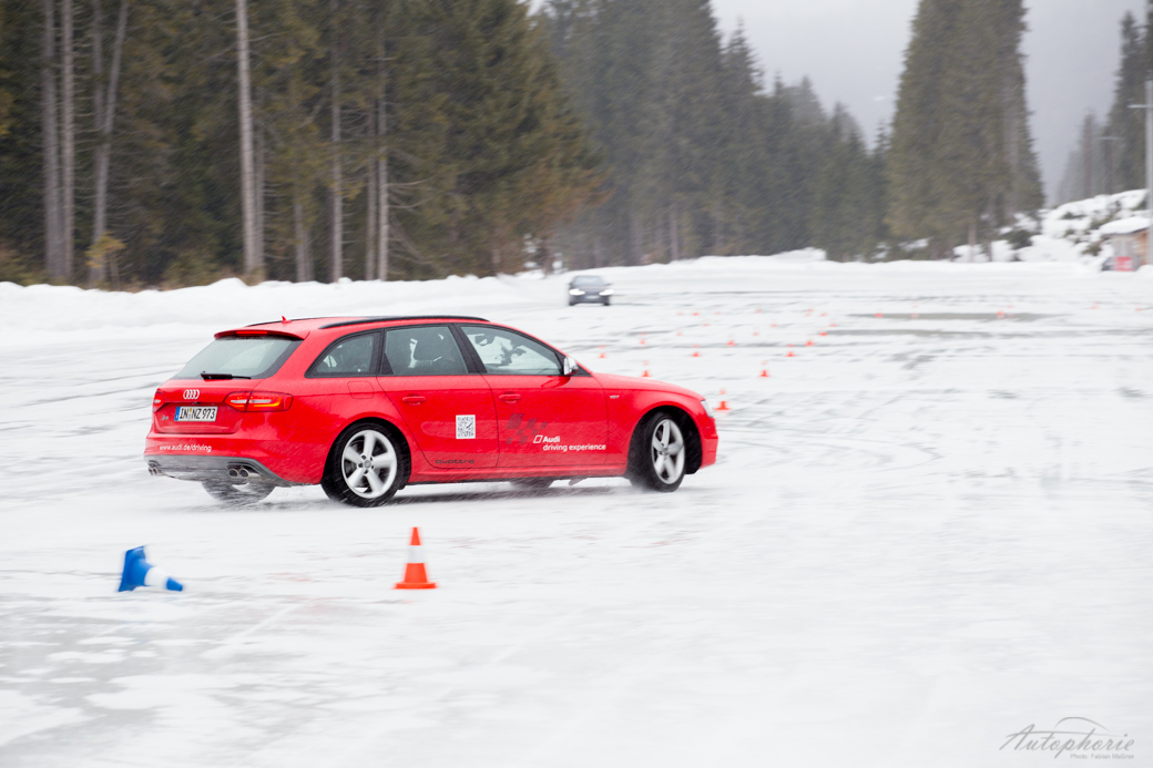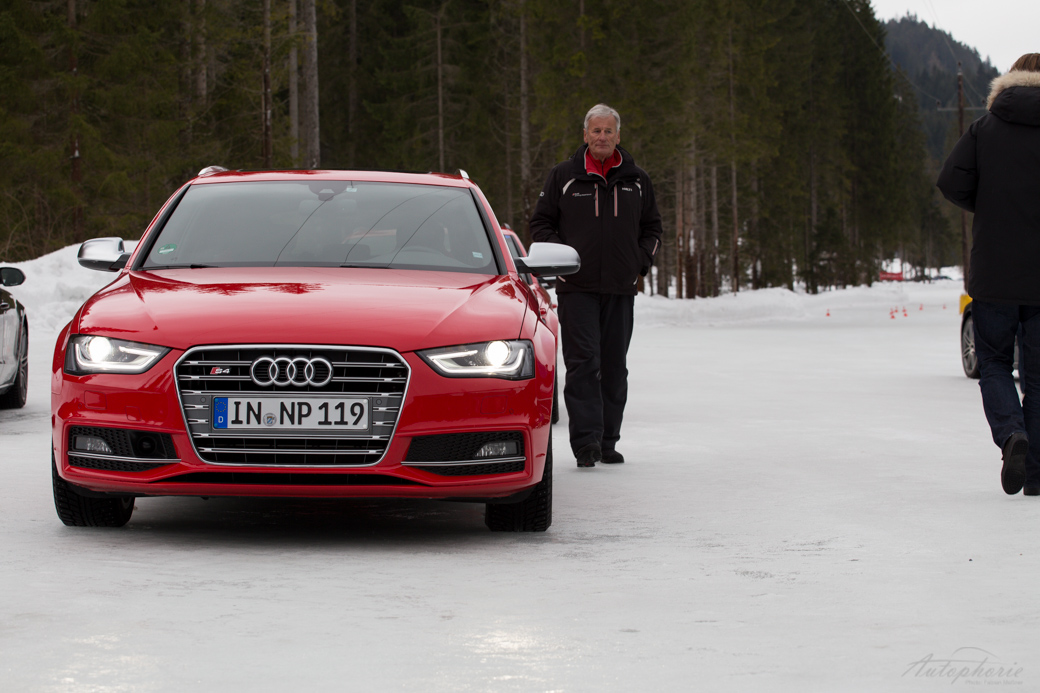 Drei. Zwei. Eins. Go! Der Startschuss, runterzählen wie bei den guten alten Rallyes der 80er Jahre. Ich sitze im Audi S4 Avant mit 333 PS unter der Haube. Über Sitzposition, Traktion, Schlupf, sowie Fliehkräfte und Antriebsmomente und die Haftgrenze haben wir einen Tag lang diskutiert, erfahren und gelernt. Doch all das kommt nun zusammen. In einer schnellen Runde. Kein Reset-Knopf wie an der Playstation. Eine Runde, die über deine Zeit entscheidet, die voraus genommen, die beste an diesem Tag sein sollte…mit einem kleinen Manko. Gas. Mehr Gas, einlenken in die erste Slalomkombination, vier mal ganz seicht am Lenkrad gedreht und schon aus dem Slalom heraus anbremsen auf die lange Rechtskurve, die auch noch weiter zumacht.