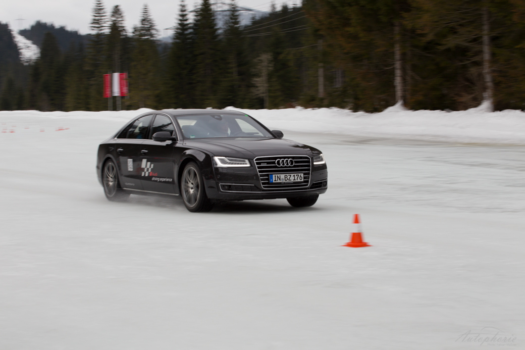 Traurig aber war, wer schnell fährt muss nicht unbedingt als Erster durch’s Ziel fahren. Diese schmerzliche Erfahrung musste ich bei der Audi Driving Experience in Seefeld, Tirol, machen. Quattro-Antrieb gepaart mit ordentlich Leistung und Spike-Reifen sorgt auch auf Eis für ausreichend Vortrieb, die Präzision geht allerdings vom Fahrer aus, und daran hat es eine Millisekunde lang gefehlt.