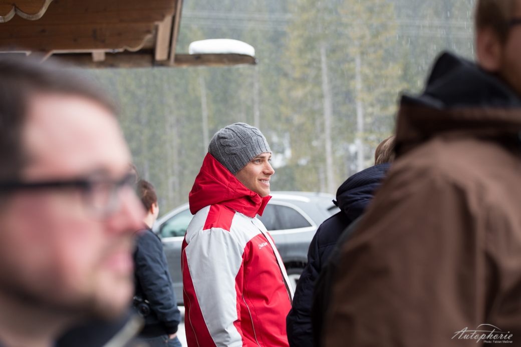 Eine nette Überraschung war auch der Besuch von Edoardo Mortara, seines Zeichens DTM-Fahrer seit 2011 und im kommenden Jahr für Abt Sportsline unterwegs. Er hatte sichtlich seinen Spaß, dabei ging es ihm in den wenigsten Fällen darum die perfekte Linie zu finden, sondern das zu tun, was er für gewöhnlich in seinem Arbeitsgerät nie tut: Driften. Das Heck tanzen lassen, oder auch mal eben mitten in der Übung einen 360 auf’s Eis zu legen.