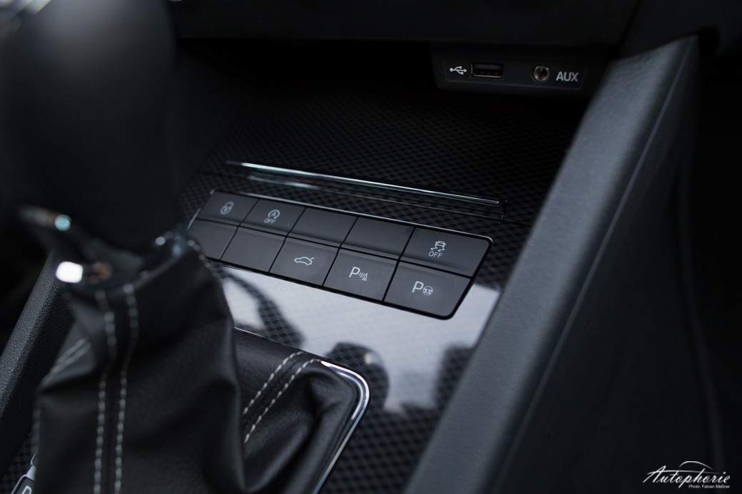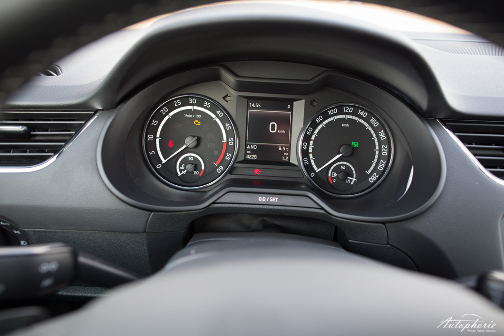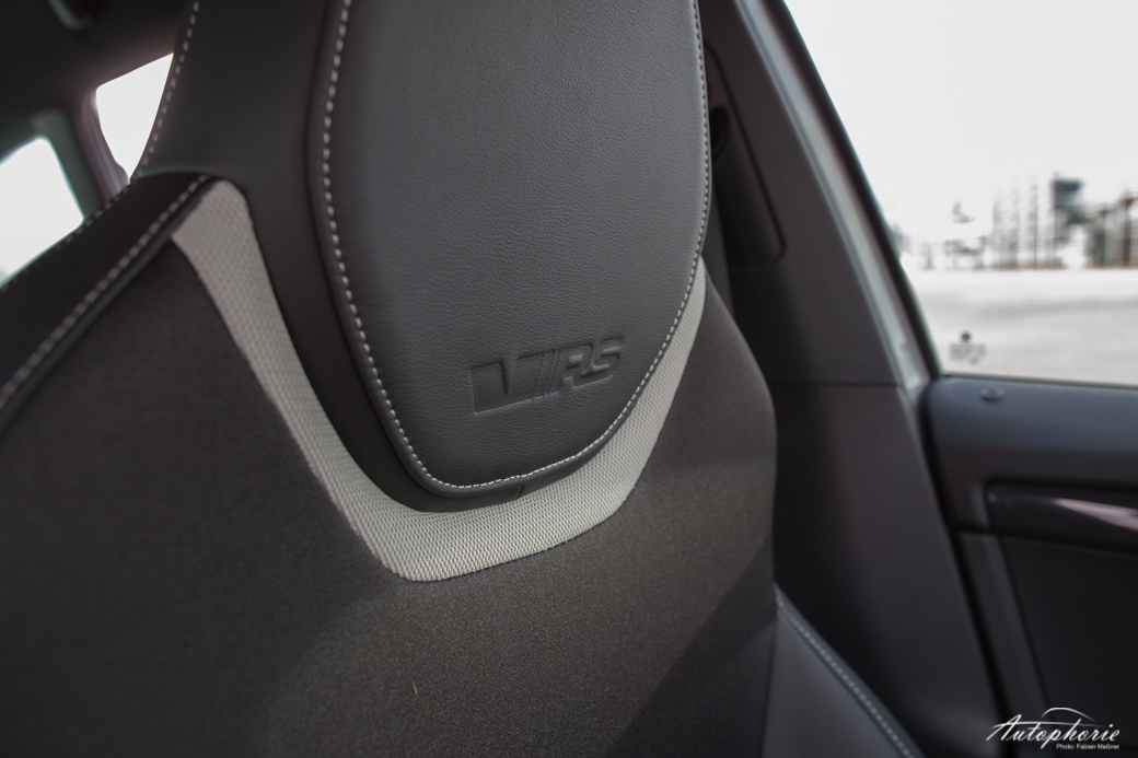Platz nehmen im Gestühl, das wie aus einer Form gegossen ist. Die Kopfstütze ist bereits in die Lehne integriert, die Wangen bieten den optimalen Mix aus sportlichem Halt und guten Langstreckenkomfort. Nur auf Schulterhöhe hätte der Halt durchaus etwas ausgeprägter sein können. Da fliegt der Oberkörper dann doch noch etwas zu lässig durch den Innenraum. Das Cockpit als solches unterscheidet sich nur in Details von den etwas besser ausgestatteten Octavias. Zum einen die Kennzeichnung am DSG-Wahlhebel und dann noch in der Lenkradspange. Schnell ist die akkurate Sitzposition gefunden, schneller als in manch anderen Fahrzeugen. Es passt einfach im Škoda. Auch der Abstand im Fußraum zu den Pedalen wirkt wie angegossen. Besonders schön gelungen ist die Integration der Näherungssensorik. Hier gliedert sich die schwarze Leiste fast unbemerkt in die Mittelkonsole ein. Optisch wirkt das Interieur dadurch gar hochwertiger als im Golf.