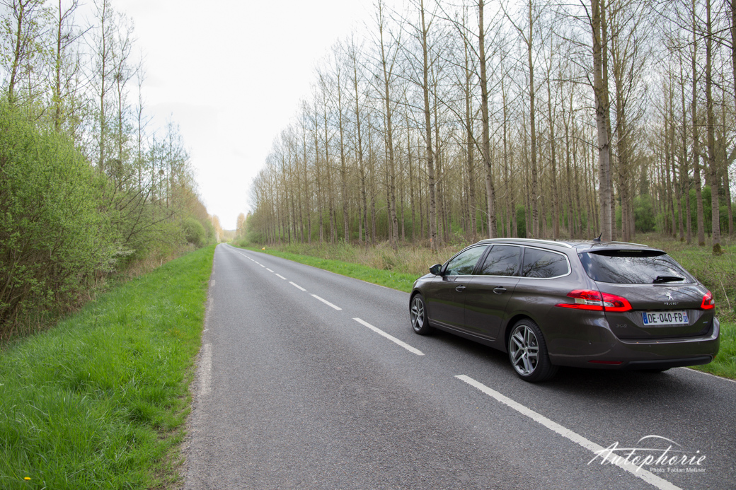 Gegenüber dem Vorgänger, dem Vor-Facelift 308 SW, ist er acht Zentimeter länger sowie sechs Zentimeter tiefer. Gleich wie die Limousine baut auch der Kombi auf der EMP2 Plattform auf. Der Radstand ist gegenüber dem Hatchback um 11 Zentimeter verlängert, was besonders im Innenraum (auf der Rückbank) zu spüren ist. Der hintere Überhang ist sogar um das doppelte angewachsen. Abgespeckt hat er zudem auch noch, alleine 70 Kilogramm durch die Verwendung der EMP2 Plattform sowie weitere Einsparungen gegenüber dem Vorgänger, was weitere 70 kg weniger bedeuten. Zusammengefasst sind 140 Kilogramm eingespart, die sich später nicht nur im geringen Leergewicht (1 420 Kg mit Automatik ist schon MAXIMAL-Leergewicht) sondern auch im geringen Verbrauch niederschlagen. Unter Beweis gestellt wurde das schon mit dem UTAC certified Testlauf bei dem nur 2,85 Liter auf 100 km verbrauch wurden sowie eine Reichweite von 1 810 Kilometer mit einem Peugeot 308 erreicht wurden – mit einer Tankfüllung. Der Motor dabei war der neue e-THP Dreizylinder mit 130 PS, dazu in den nächsten Tagen mehr.