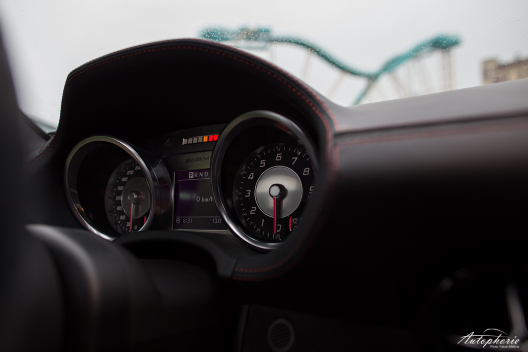 Und natürlich die Frage: will it drift. ‚Türlich, doch das hat auch Jeremy Clarkson (TopGear auf vimeo) schon bewiesen, dazu muss nichts weiter erwähnt werden. Auch muss ich aber seine These der „eigentlich will er das gar nicht“ bestätigen. Hin und wieder zuckt das Heck beim Angasen aus der Kurve, doch bereits beim leichten Öffnen der Lenkung drückt er kaum beschreibar wieder raus und zieht auf die Gerade, dass…Keine Ahnung, wie man das verdeutlichen kann. Vergiss alles, was du über Mercedes weißt. Und gleich nochmal zur Sicherheit. Lösche alle Erinnerungen an die Marke aus Stuttgart. Lass dich von Präzisionswaffen und Lenkraketen inspirieren und dann hast du eine ungefähre Ahnung, wie es ist, ein paar wenige Minuten im SLS AMG Black Series mit dir selbst um Leben und Tod zu ringen.