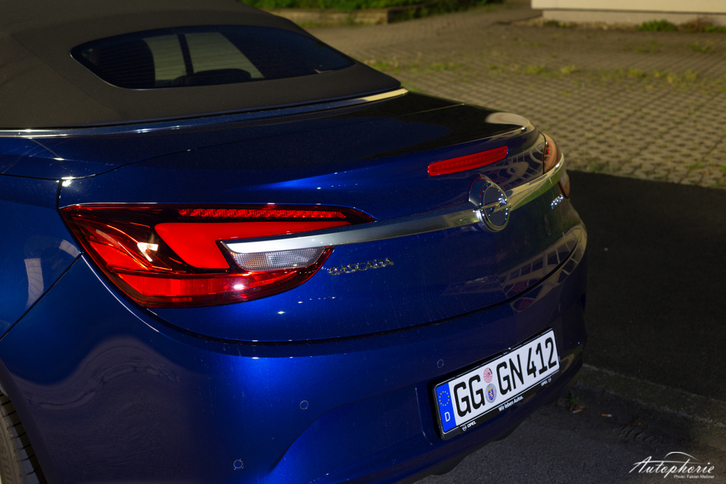 Einen guten Rücken macht der Cascada geschlossen, wie geöffnet. Und das nicht nur wegen der Ergonmie-Sitze. Nein auch optisch dringt Opel hier in eine Liga vor, die historisch so nichts mit den Opelaner zu tun hatte – sieht man einmal vom Opel GT Ende der 60er Jahre ab. Schön gezeichnet ist das Cabriolet, vor allem im Hinblick auf die Vorgänger, die kantig, unproportioniert und irgendwie deplatziert waren. Hier wurde zu Ende gedacht. Auch als man sich entschied ein optionales Akustik-Verdeck anzubieten – falls es mal regnet, versteht sich. Denn bei den besagten 200 km/h ist weder offen, noch geschlossen eine zu hohe Geräuschkulisse zu bemäkeln.