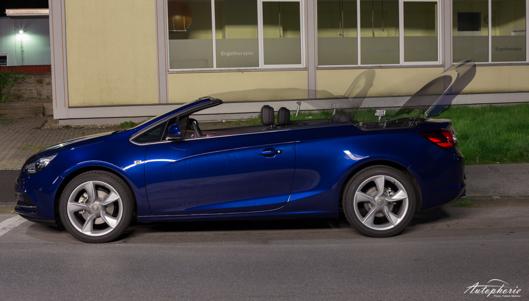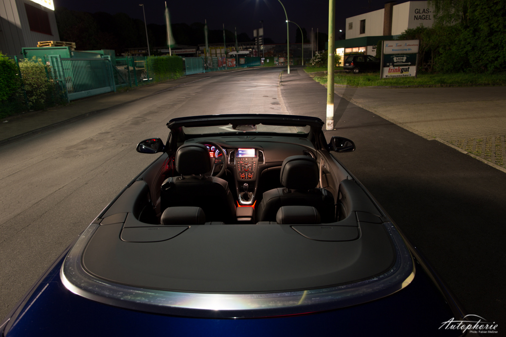 Wichtig an einem Cabrio ist doch, wie es sich offen fährt. Und da kann der Rüsselsheimer genauso mit Golf und Co. mithalten, wie man es erwarten darf. Das Windschott hält die groben Verwirbelungen, zumindest in der ersten Reihe, draußen. Ohne Windschott wird es dagegen schon bei Stadtgeschwindigkeit ordentlich luftig um die Knie. Das muss durch die große Öffnung kommen, denn obgleich das Kompaktcabrio auch mit dem sprichwörtlichen „Schiff“ zu vergleichen ist, dieser Raum zeigt sich auch innen. Denn gegenüber dem Golf Cabriolet zum Beispiel können hinten auch problemlos Personen ohne Knieamputation sitzen. Dazu sei gesagt, ohne den Fahrersitz umzustellen!