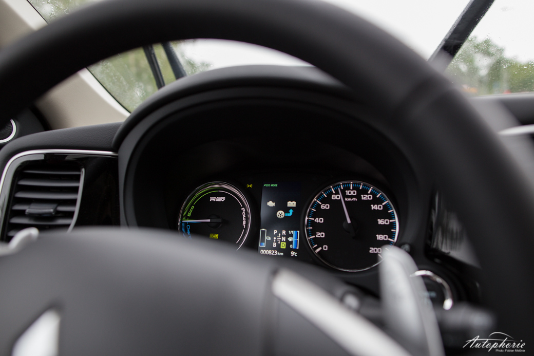 Einschränkungen gibt es keine, lediglich 45 mm im Fond und 19 mm im Kofferraum ist der Boden jeweils höher als bei den Verbrennermotoren des Outlander. Die Batterie, die alleine für 52 Kilometer Reichweite gut ist, sitzt direkt unter den Passagieren in einem speziellen Trägerahmen. Insgesamt ergibt sich mit dem 121 PS Vierzylinder-Triebwerk eine Reichweite von 827 Kilometern. Mehr als ausreichend, insbesondere mit dem Blick darauf, dass ich über 50 Kilometer Emissionsfrei* fahren kann.