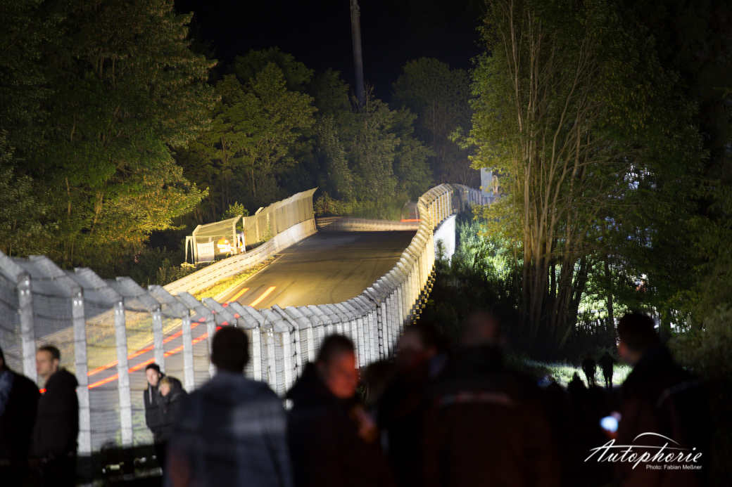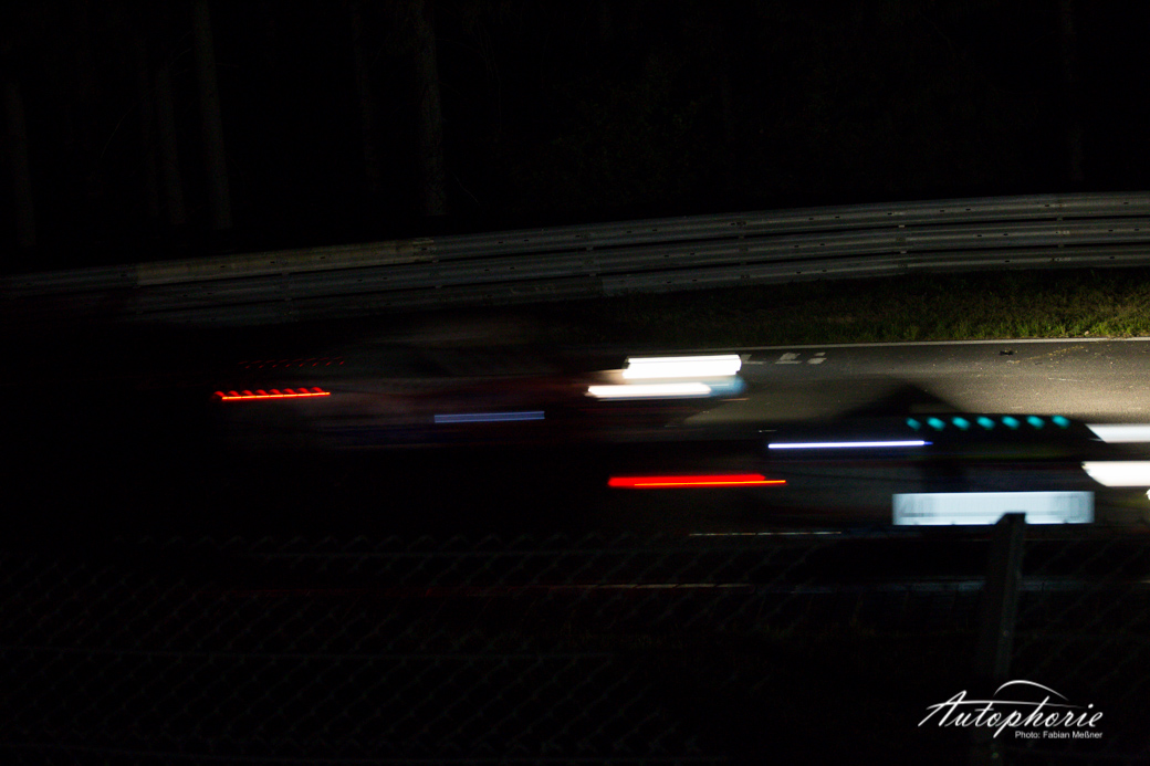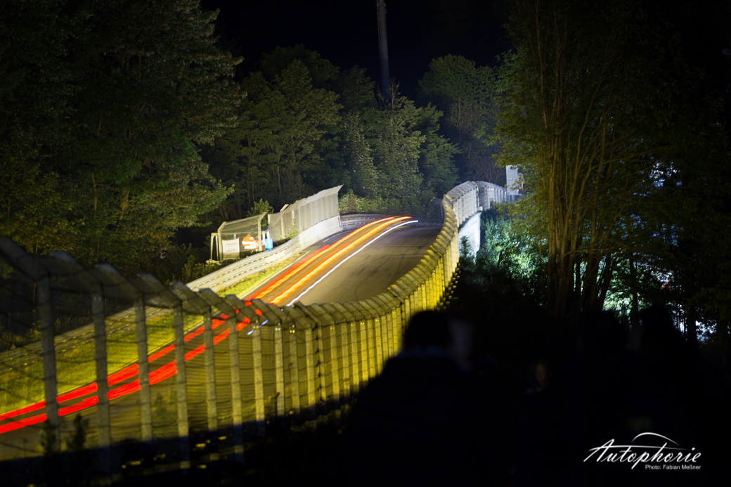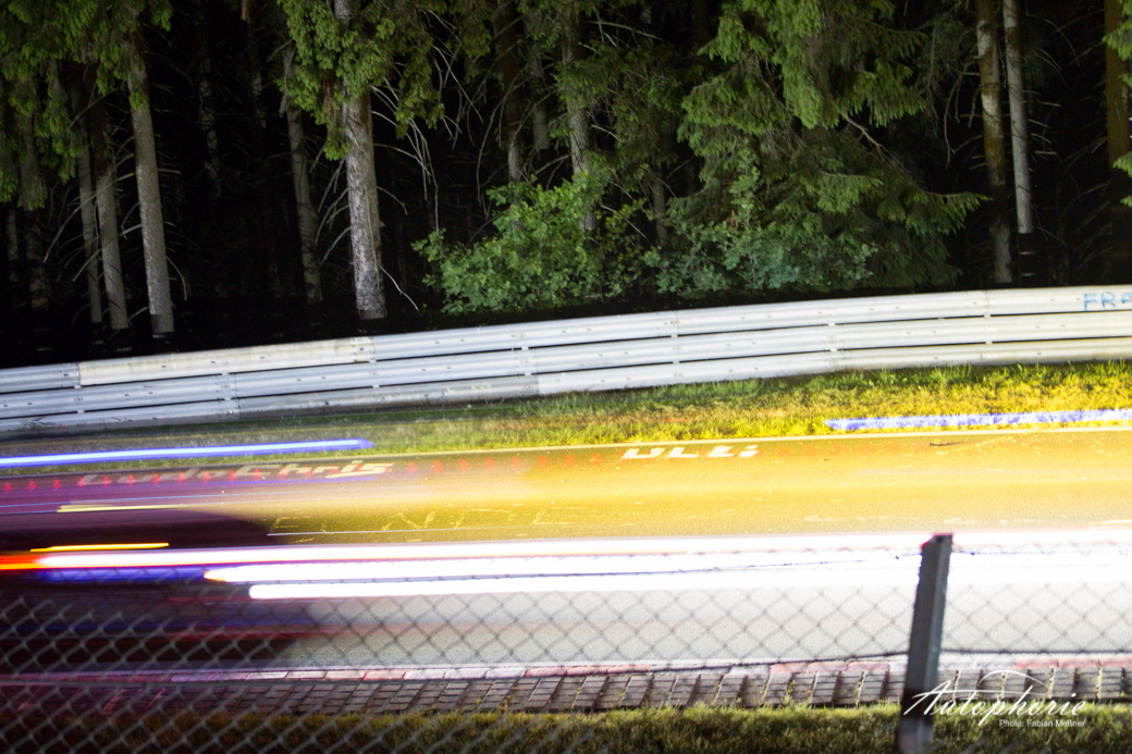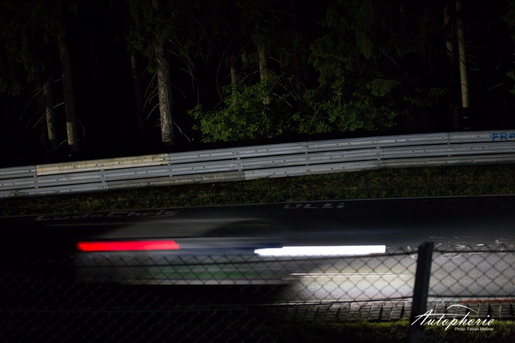 Eindrücke würden wir euch gerne mit etwas mehr Farbe bringen, aber sagen wir es einmal so: wenn es in der Eifel dunkel wird, dann richtig! Nur die Lichter fliegen hier immer wieder an uns vorbei. Die Stimmung neben der Strecke versiebt so langsam, die Fans sind müde nur noch kleine Grüppchen sitzen noch ums Lagerfeuer und verfolgen mit den Augen jedes einzelne vorbeifahrende Auto.