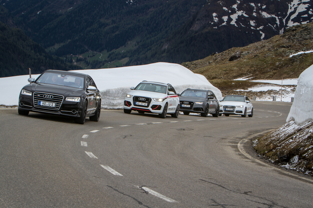 Nach einer ruhigen Nacht in Zell am See ging es am zweiten Fahrtag voller Freude Richtung Großglockner los. Die Hochalpenstraße sollte uns bis zum frühen Nachmittag beschäftigen. Die Maut-Gebühr sollte schließlich auch gut investiert sein. Wildes durchmischen war an der Tagesordnung, vorerst war ich im ABT RS6 „gefangen“. Keinesfalls langweilig mit 700 PS, doch es hatte einen Grund, warum ABT RS Q3 und S3 Limousine an diesem Morgen sehr beliebt und gefragt waren.