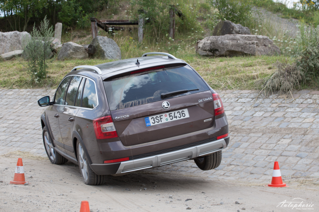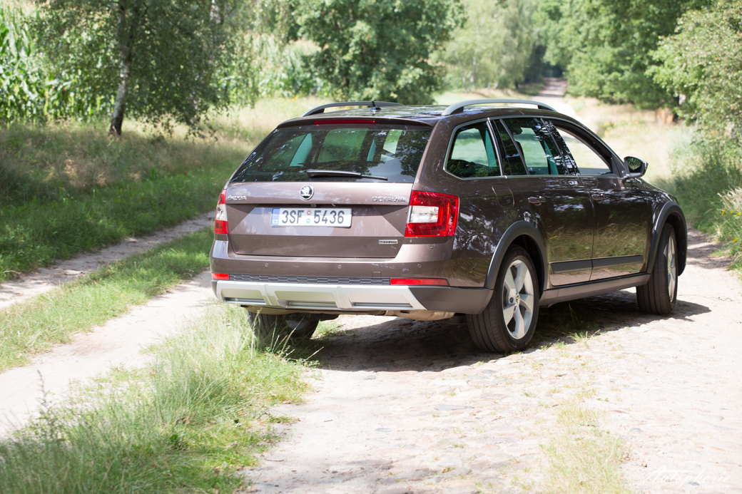 Beim Design orientiert er sich logischerweise an der aktuellen dritten Generation des Škoda Octavia. Neben den schwarzen Plastikverkleidungen an den Radkästen, den Seitenschwellern sowie seitlich zur Front- und Heckpartie unterscheiden ihn noch weitere Details. Direkt unter dem Scheinwerfer findet sich ein neuer Knick, der die Front in die Breite zieht. Mittig an Front- und Heckschürze gibt es zudem ein funkelndes Stück Chrom, das dem harten Einsatz im Gelände standhalten muss.