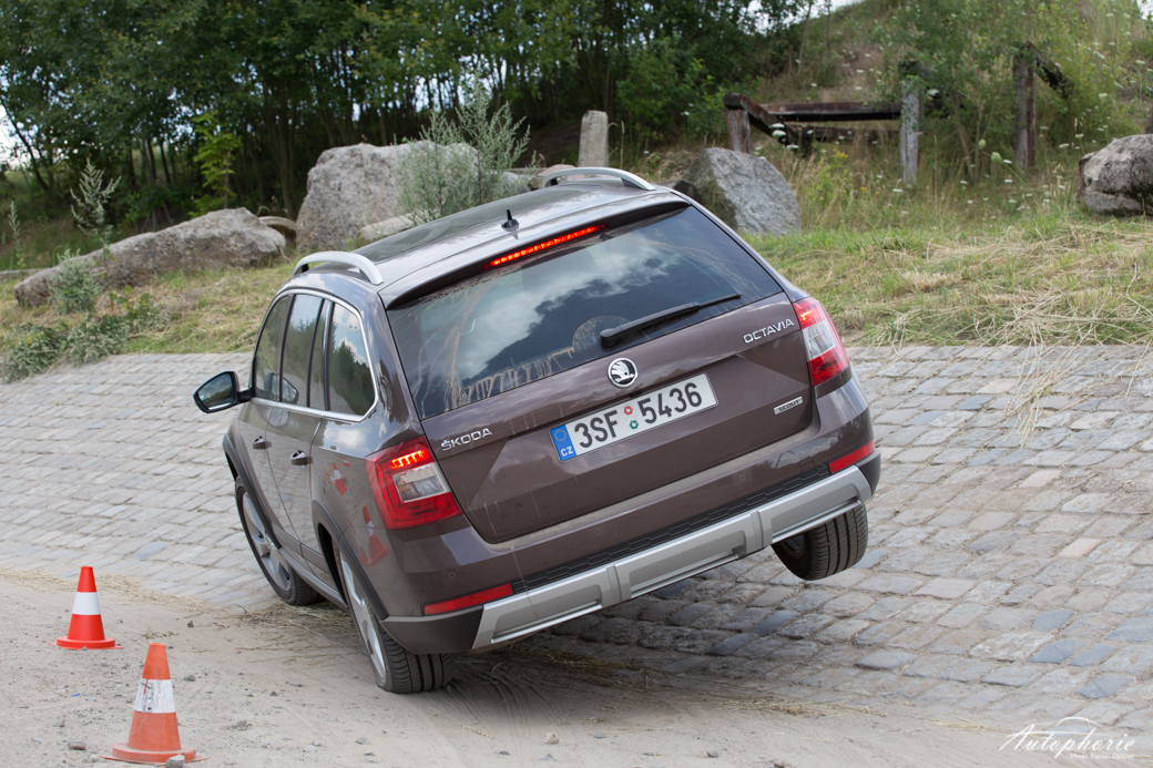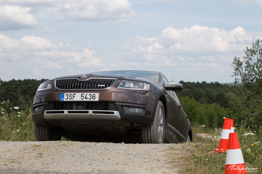 Beim Design orientiert er sich logischerweise an der aktuellen dritten Generation des Škoda Octavia. Neben den schwarzen Plastikverkleidungen an den Radkästen, den Seitenschwellern sowie seitlich zur Front- und Heckpartie unterscheiden ihn noch weitere Details. Direkt unter dem Scheinwerfer findet sich ein neuer Knick, der die Front in die Breite zieht. Mittig an Front- und Heckschürze gibt es zudem ein funkelndes Stück Chrom, das dem harten Einsatz im Gelände standhalten muss.