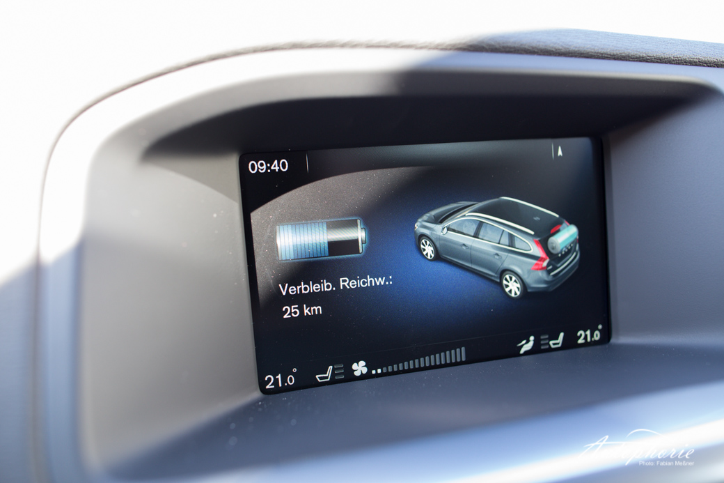 Angegeben wird der V60 Plug-in Hybrid mit 1,8 Litern auf 100 Kilometern. Ohne weiter darauf zu achten, hieß es im Bordcomputer nach der Testfahrt durch und um Hamburg, dass es 2,5 Liter / 100 km waren, die er verbraucht hatte.