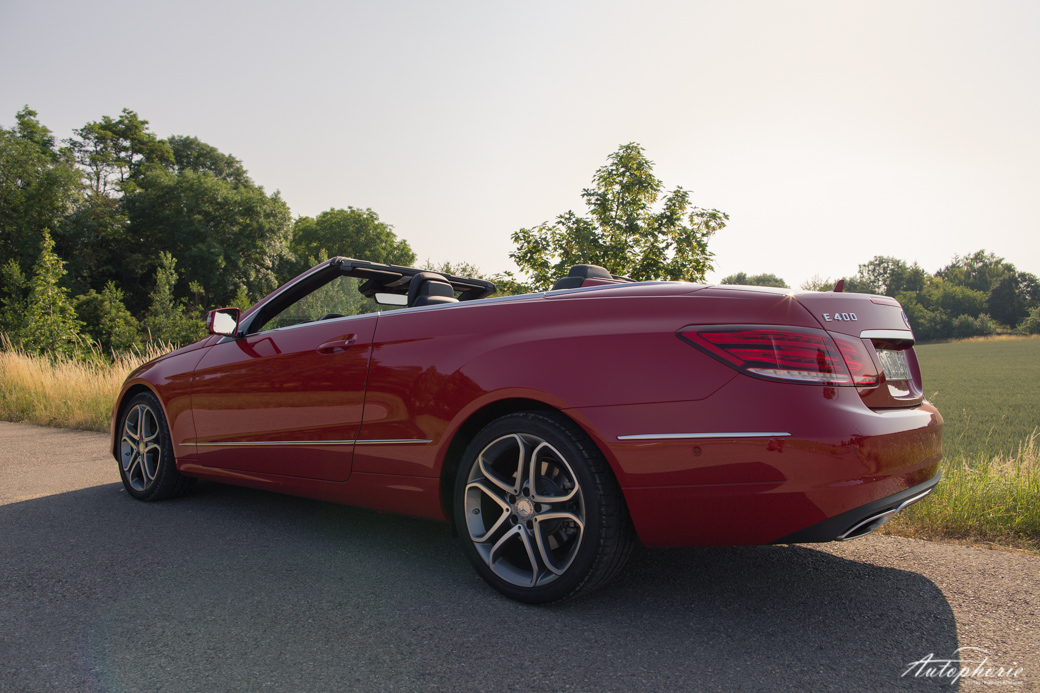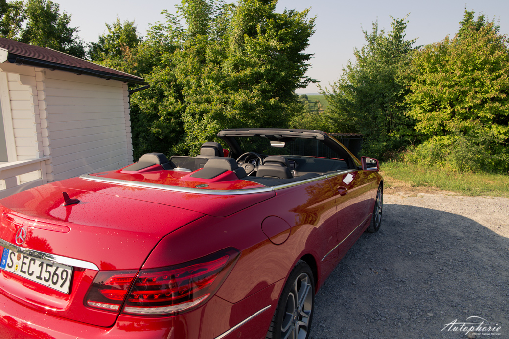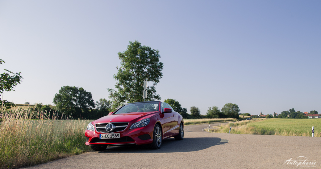 Eigentlich wollte ich mit brabbeln und blubbern durch Städte und Wälder ziehen, mir den Nacken von der Sonne bräunen lassen, aber irgendwie kam dann doch fast alles anders. Passend zum Sommer wollte ich mit einem E500 Cabriolet mal wieder einen V8 genießen. Die Stuttgarter wollen mich scheinbar umpolen und es gelingt ihnen vielleicht. Vor der Tür stand dann schlussendlich ein E400 in Rot. Der neue Motor. In Rot. Das mit der Farbe ist wirklich gewöhnungsbedürftig. Der Motor nicht!