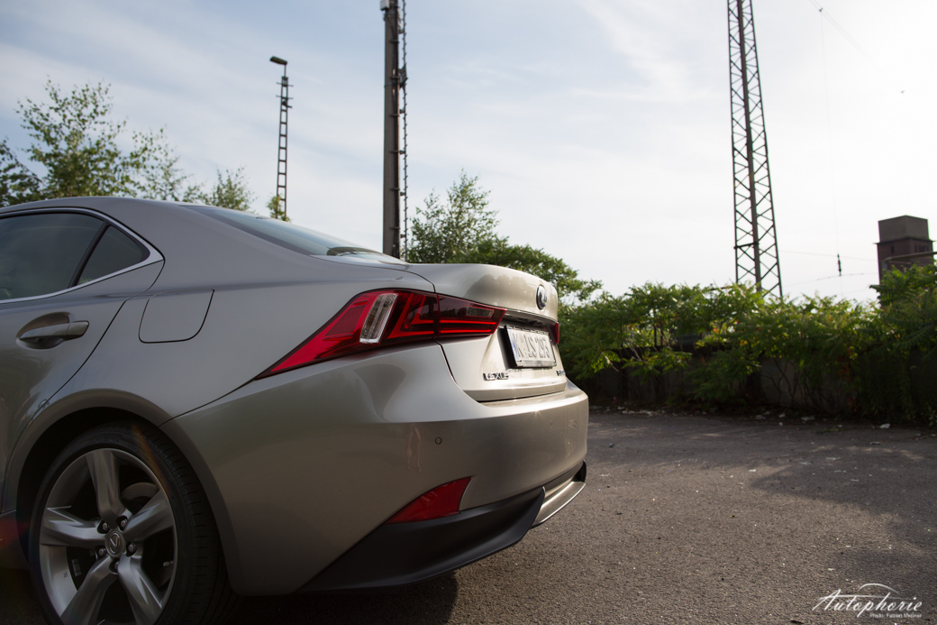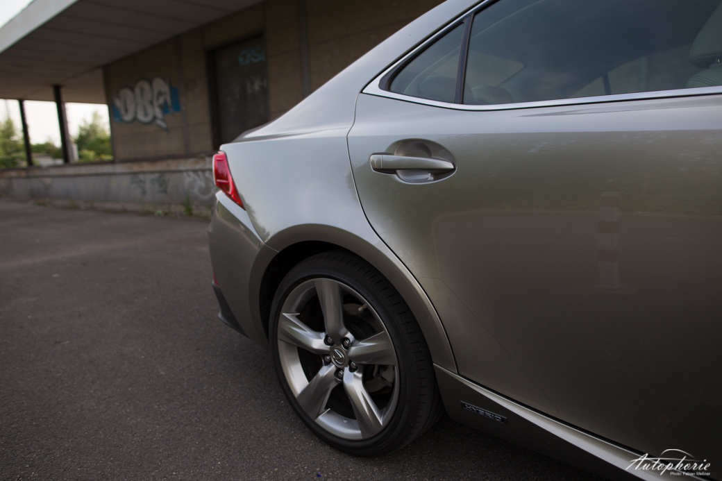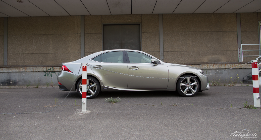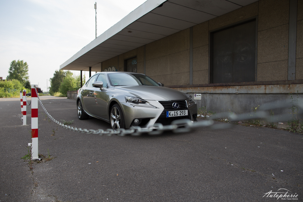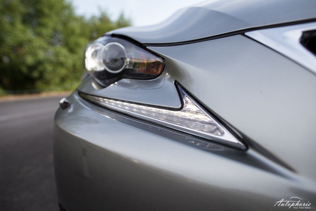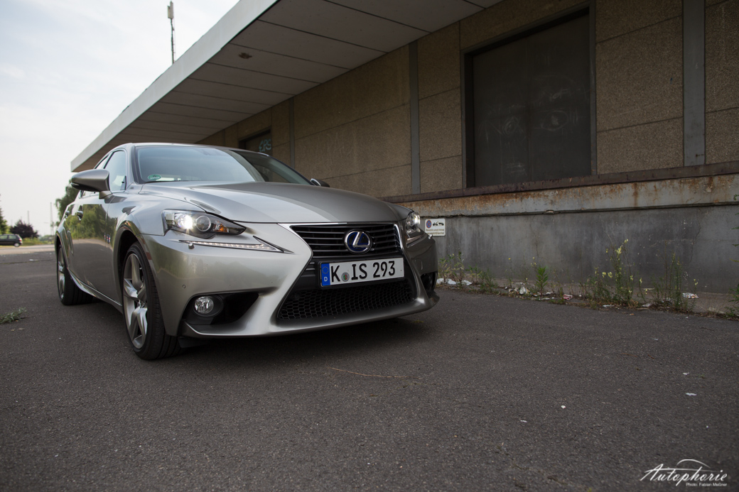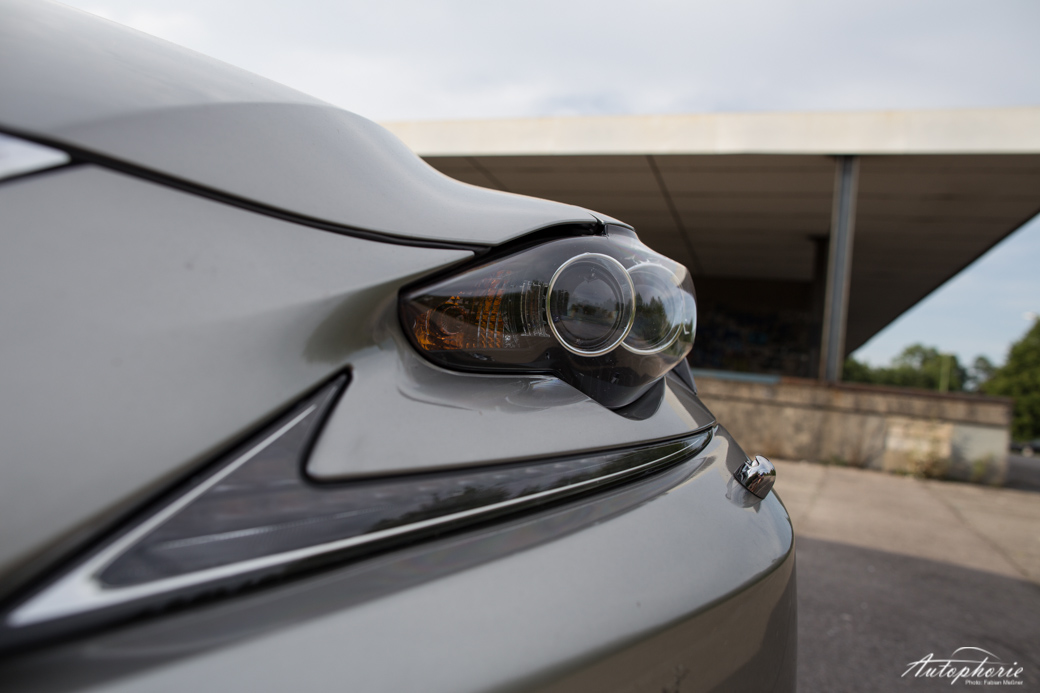 Um das Beste für den Schluss aufzuheben und damit auch zu jenem zu kommen: das Design. Es spaltet wahrscheinlich die Nation. Hate it or Love it – lasst uns ruhig in den Kommentaren wissen, was eurer Meinung nach Sache ist! Ich finde, die Leute drehen sich zu Recht nach dem Lexus IS um. Wohl eher, weil sie sich fragen, was genau das nun ist und weniger wegen einem „wow-geil-haben-will“-Moment. Vermutlich steckt einiges an Skepsis dahinter. Er mischt den biederen Laden ordentlich auf, hat unkonventionelle Formen, besonders in der Front zu bieten. Oder wo bitte gibt es heute noch solche Scheinwerfer?