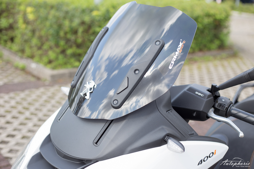 Dabei stellt sich – ich bin inzwischen einige Kilometer damit unterwegs – eine französische Leichtigkeit ein. Agil und wendig flutscht der über zwei Meter lange Roller durch die Gassen. Der 399 cm³ Einzylinder-Viertaktmotor rattert unten herum noch etwas unruhig, bei höheren Drehzahlen sowie Geschwindigkeiten läuft er äußert kultiviert. Nur eben im Stand, da rüttelt der Lenker ordentlich das Arm-Fett aus den Zellen.