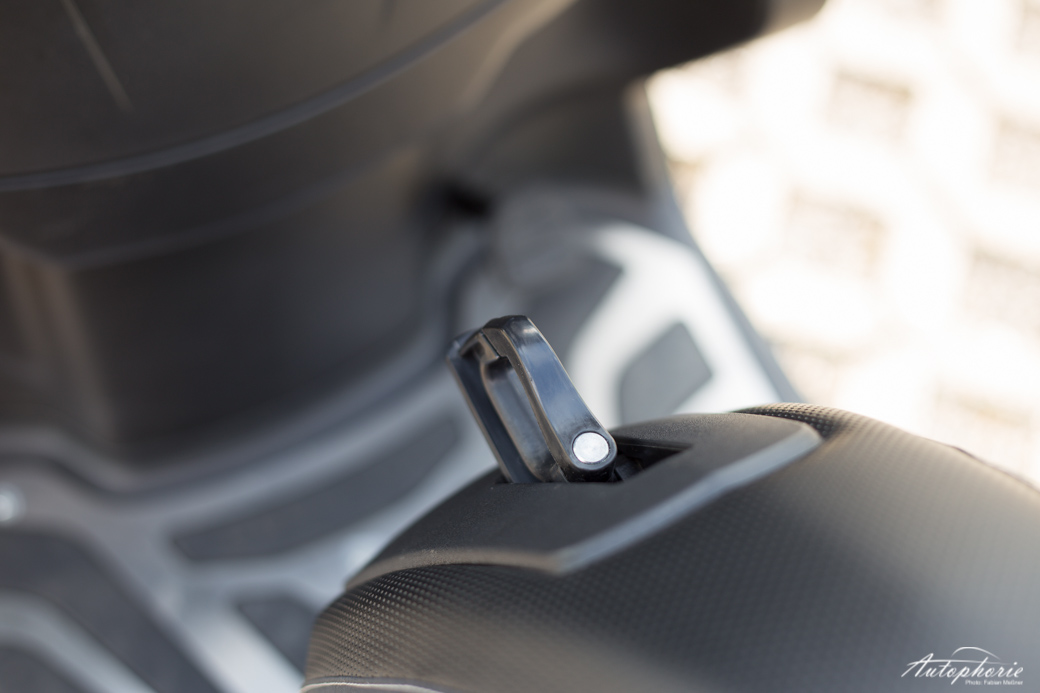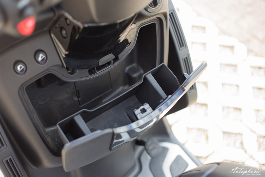 Abgesehen von kurzen Wellen, die ein ungewolltes aus dem Sattel springen zur Folge haben, sitzt es sich extrem komfortabel auf der dicken Bank. Eigentlich ist diese viel zu schade für kurze Trips in die Stadt. Mit einer maximalen Höchstgeschwindigkeit von 150 km/h ist er doch gerade darauf ausgelegt. Die zwei großen Staufächer, ein Integral-Helm bekommst du hier nicht hinein, dafür einen Jet-Helm oder deine Einkäufe. Und dank dem Durchstieg passt auch noch eine Einkaufstüte zwischen die Beine, die am ausklappbaren Haken gesichert werden kann.