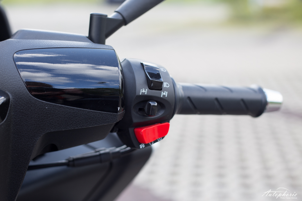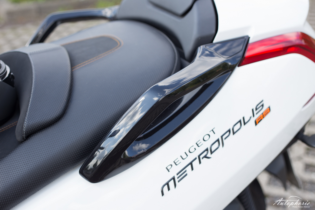 Im RS-Dress lässt er sogar mich dabei noch gutaussehen. Sportlicher als der gewöhnliche Metropolis ist er nicht, doch wie wir aktuell auch von den Autoherstellern erfahren, über die Optik geht doch einiges. Für nur 100 Euro mehr gibt es orange-farbene Highlights (Nähte), eine weiße oder titan-farbene Lackierung der oberen Karosserieteile. Das Trittbrett bleibt schwarz und die unschöne Plastikabdeckung auf dem Endtopf fällt auch weg.