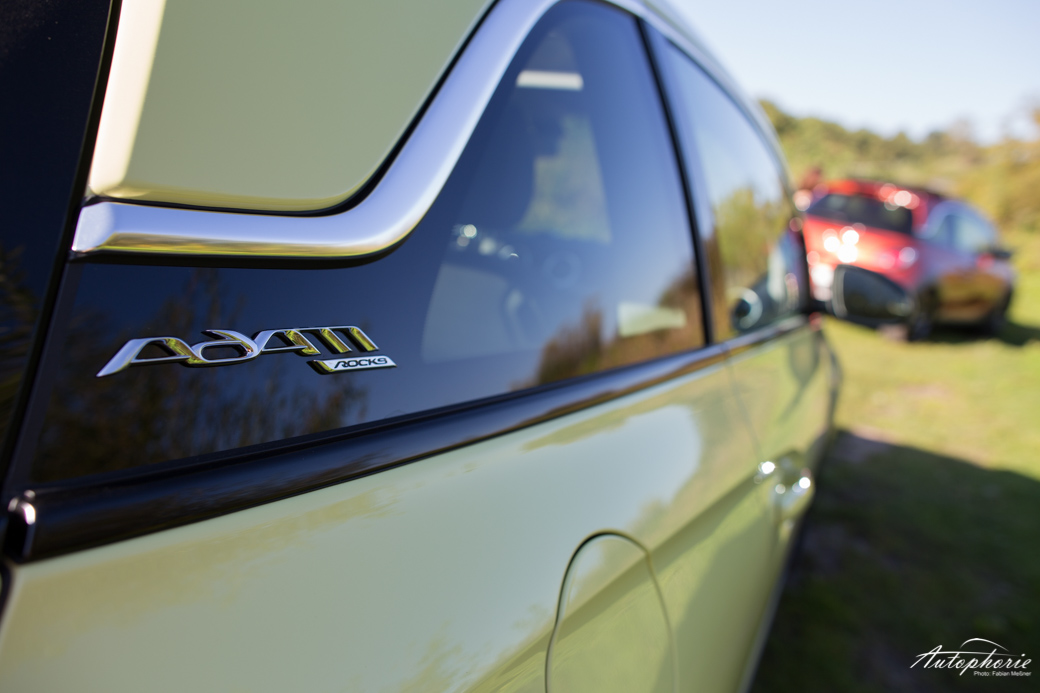 Auch innen ist alles anders oder auch nicht. IntelliLink ist weiterhin als die Smartphone-Integrierung schlechthin gesetzt. Darüber hinaus gibt es neue Sitzpolster, die nur dem Rocks vorbehalten sind. Direkt vom Rocks Concept, aus dem Jahr 2013 abgeleitet, fand auch der erdnussfarbene Stoff/Morrocana-Bezug für Sitze und Türverkleidungen in das Serienfahrzeug.