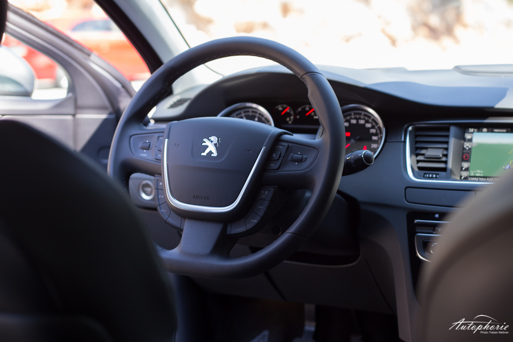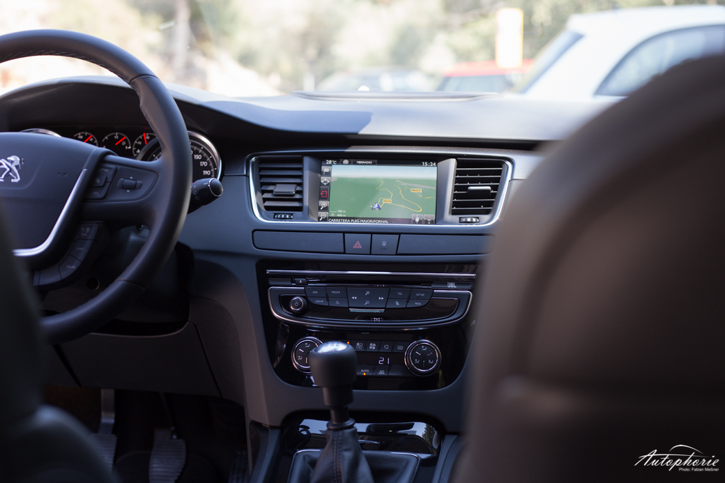 Dort kann der Chef auch alles andere verstellen ohne sich auf dem Touchscreen nicht zurecht zu finden. Da es im wahrsten Sinne des Wortes nur ein Facelift also ein „Restyling“ ist, wurde auch das neue i-Cockpit nicht eingebunden. Damit bleibt es vorerst folglich dem Peugeot 308 vorbehalten. Im D-Segment setzen die Franzosen weiterhin auf Knöpfe, werden dabei übersichtlicher. Klare Hauptpunkte sind über Tasten anzuwählen, der Touchscreen regelt primär die Navigation. Diese gibt manchmal verwirrende und ungenaue Ansagen durch. Idealerweise muss der Blick auf die Straße mit dem Blick auf das Navi abgeglichen werden, denn die akustischen Ansagen ergeben hin und wieder keinen Sinn.