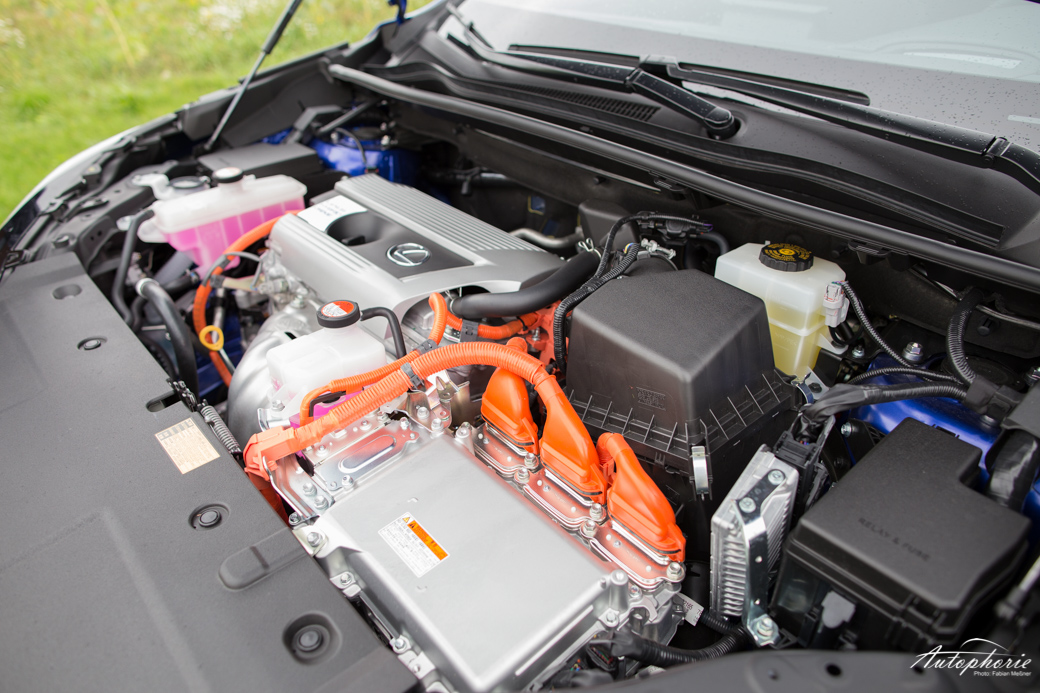 Vorerst geht nur der Lexus NX 300h an den Start. 2,5-Liter Motor (Atkinson-Zyklus) gepaart mit (im Fall des AWD) zwei Elektromotoren. Primär wird dabei der Elektromotor an der Vorderachse genutzt, der über die Räder Energie rekuuperiert. Diese gibt er auch wieder an die vorderen Räder ab. Der hintere Elektromotor mit 50 kW Leistung dient vorzugsweise als „Dynamo“. Er lädt die Batterie durch die Bremsenergie etc. wieder auf. Erst, wenn es der Antrieb für nötig hält, wird Energie über den hinteren Elektromotor an die Hinterachse gegeben. Sei es in „offroad“ Gefilden oder wenn die flotte Fahrweise über kurvige Straßen nach einem agileren Heck verlangt.