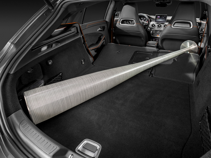 Der Kompakte mit Rucksack ist da: Der Mercedes-Benz CLA Shooting Brake (X117) soll durch eine flach abfallende Dachlinie vor allem den Passagieren auf dem Rücksitz mehr Platz bieten. Und dann packt er noch am meisten Weg: 495 Liter sind kein Problem und bis zu 1.354 Liter Kofferraumvolumen bietet der CLA Shooting Brake. Seine Abmessungen in Länge / Breite / Höhe sind 4.630 mm, 1.777 mm und 1.435 mm.