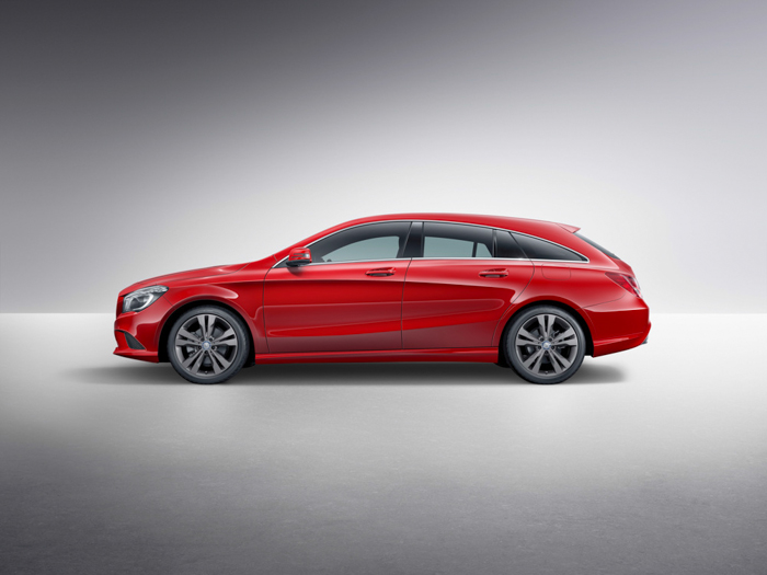 Bei den Idealen strebt er seinem großem Bruder dem CLS Shooting Brake nach. Weiterhin bleibt es bei den rahmenlosen Scheiben wie bei einem Coupé und dem Gewinn der Kopffreiheit auf der Rückbank. Er bekommt durch die oberhalb der Radläufe bzw. unterhalb der Fensterunterkante verlaufenden Linie ein neues Lichtspielt gegenüber dem CLA, endet in den gleichen Rückleuchten. Optional schwingt die Klappe auch elektrisch auf, serienmäßig ist das freihstehende Display sieben Zoll groß, wer etwas mehr Geld für Comand Online oder Audio 20 investiert bekommt das acht Zoll große Display.